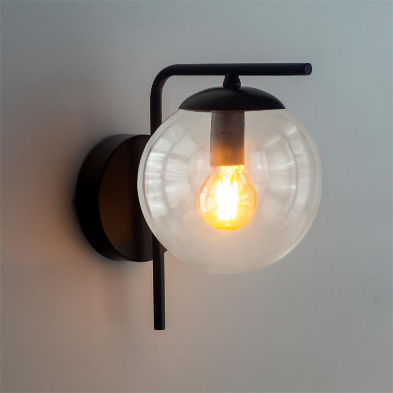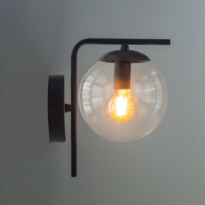 Serie PATRICIA. Fabricado en metal en color negro ,vidrio transparente , . Para su funcionamiento requiere 1 bombilla con casquillo E14. (bombillas no incluidas en la caja) .Apta para bombillas de tecnología Led cuya potencia máxima admitida por casquillo es de 15W. Con unas dimensiones de 13cm ancho por 20cm de profundo y 21cm de alto y un peso real aproximado de 460 gramos.Muy fácil de limpiar con una gamuza humedecida en agua y jabón neutro, te recomendamos que evites el uso de productos químicos que puedan dañarla.