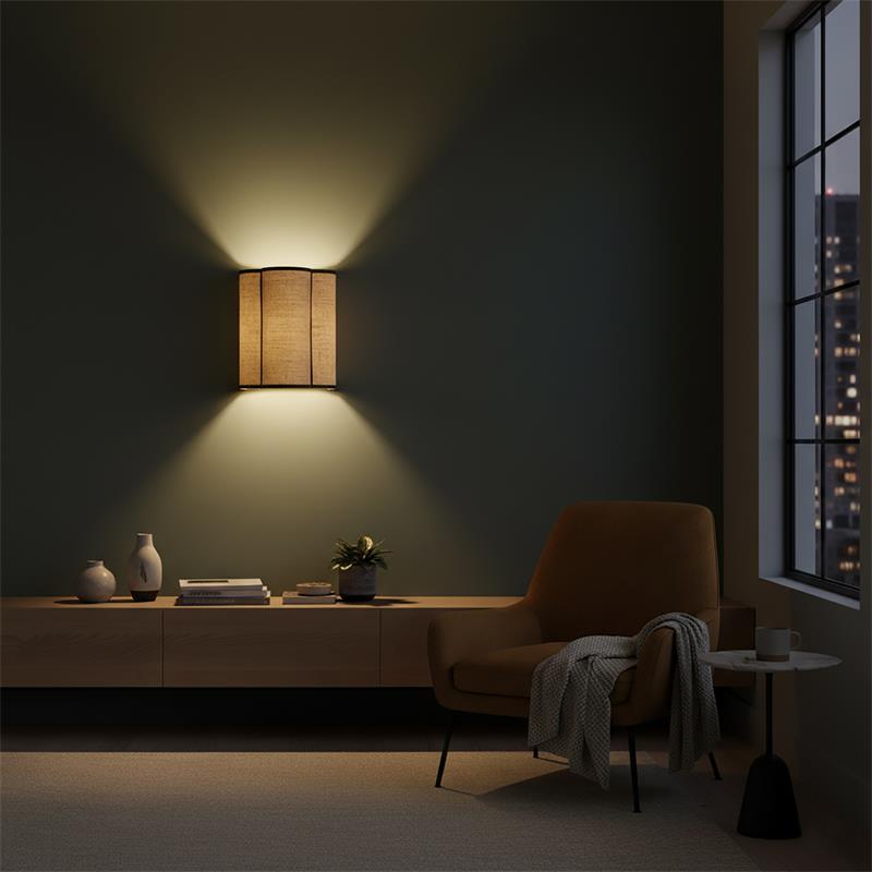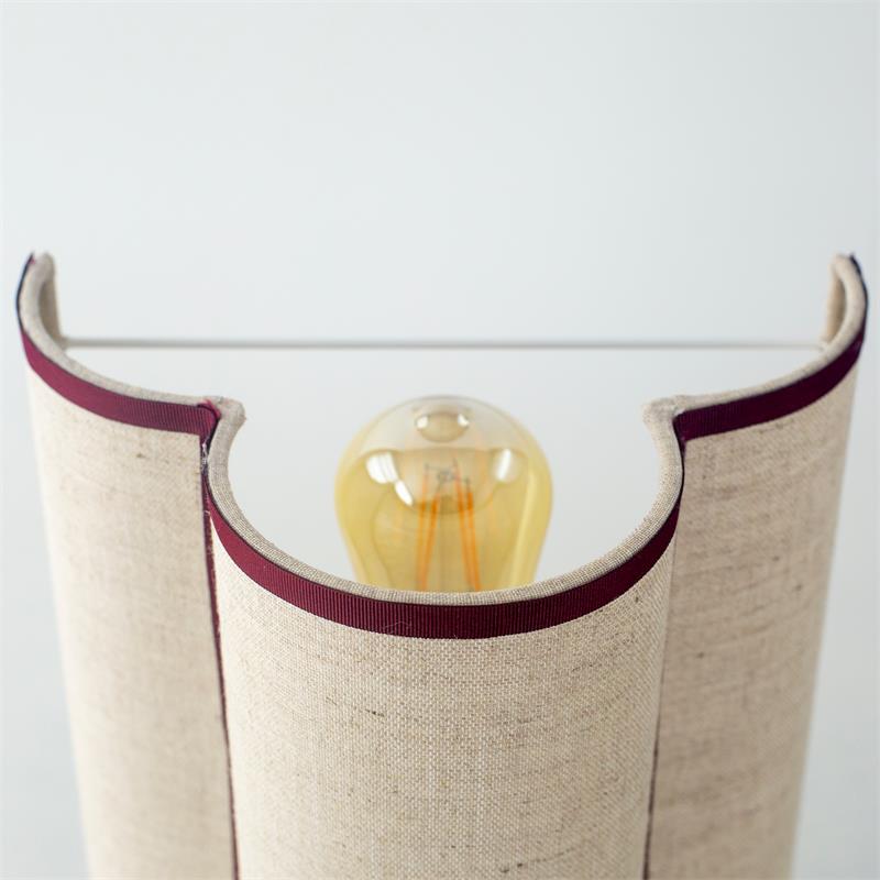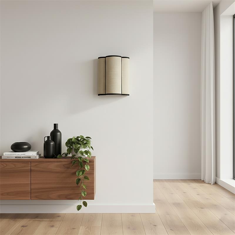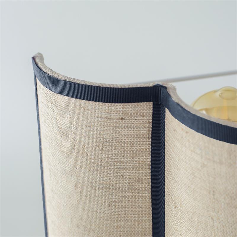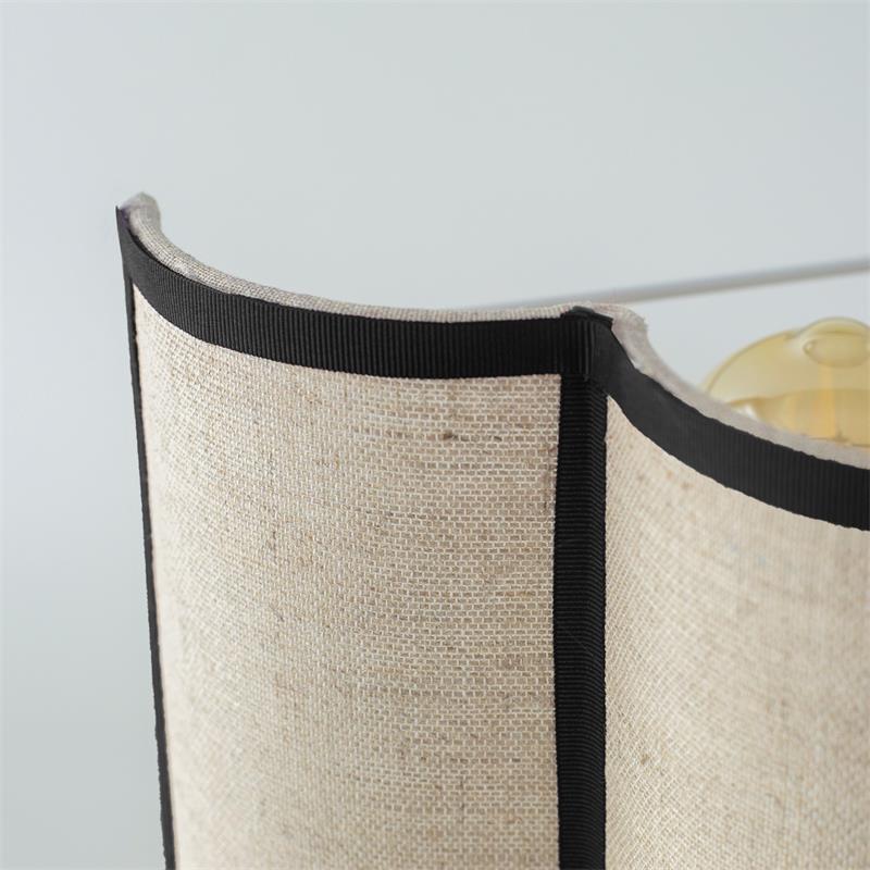 Serie ACACIA. Fabricado en yute en color beige ,textil negro , . Para su funcionamiento requiere 1 bombilla con casquillo E27. (bombillas no incluidas en la caja) .Apta para bombillas de tecnología Led cuya potencia máxima admitida por casquillo es de 15W. Con unas dimensiones de 25cm ancho por 16cm de profundo y 30cm de alto y un peso real aproximado de 350 gramos.Muy fácil de limpiar con una gamuza humedecida en agua y jabón neutro, te recomendamos que evites el uso de productos químicos que puedan dañarla.