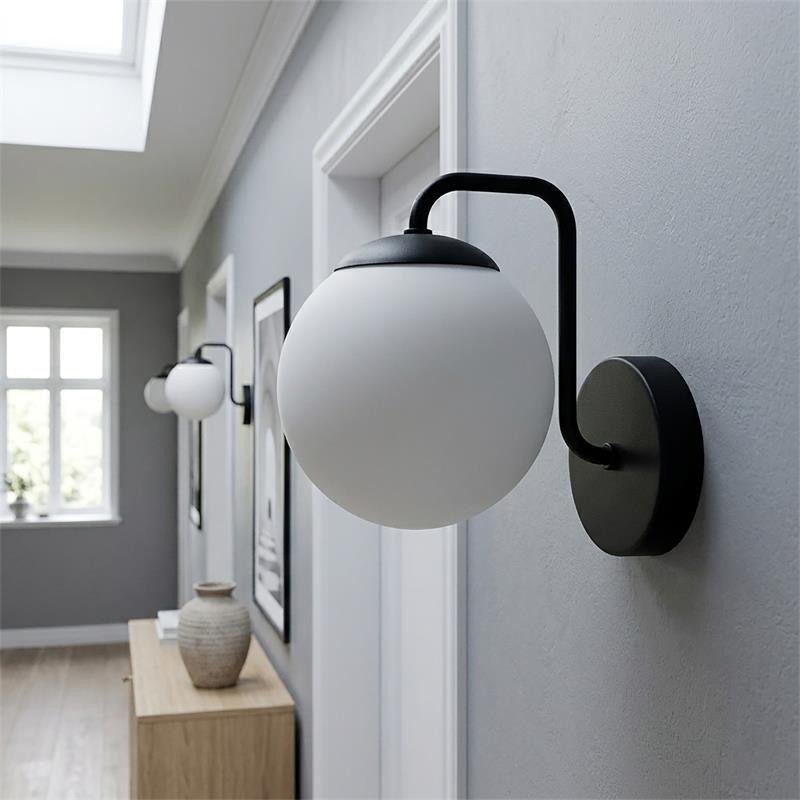 Serie CINTIA. Fabricado en metal en color negro ,vidrio blanco , . Para su funcionamiento requiere 1 bombilla con casquillo E14. (bombillas no incluidas en la caja) .Apta para bombillas de tecnología Led cuya potencia máxima admitida por casquillo es de 15W. Con unas dimensiones de 13cm ancho por 20cm de profundo y 20cm de alto y un peso real aproximado de 450 gramos.Muy fácil de limpiar con una gamuza humedecida en agua y jabón neutro, te recomendamos que evites el uso de productos químicos que puedan dañarla.