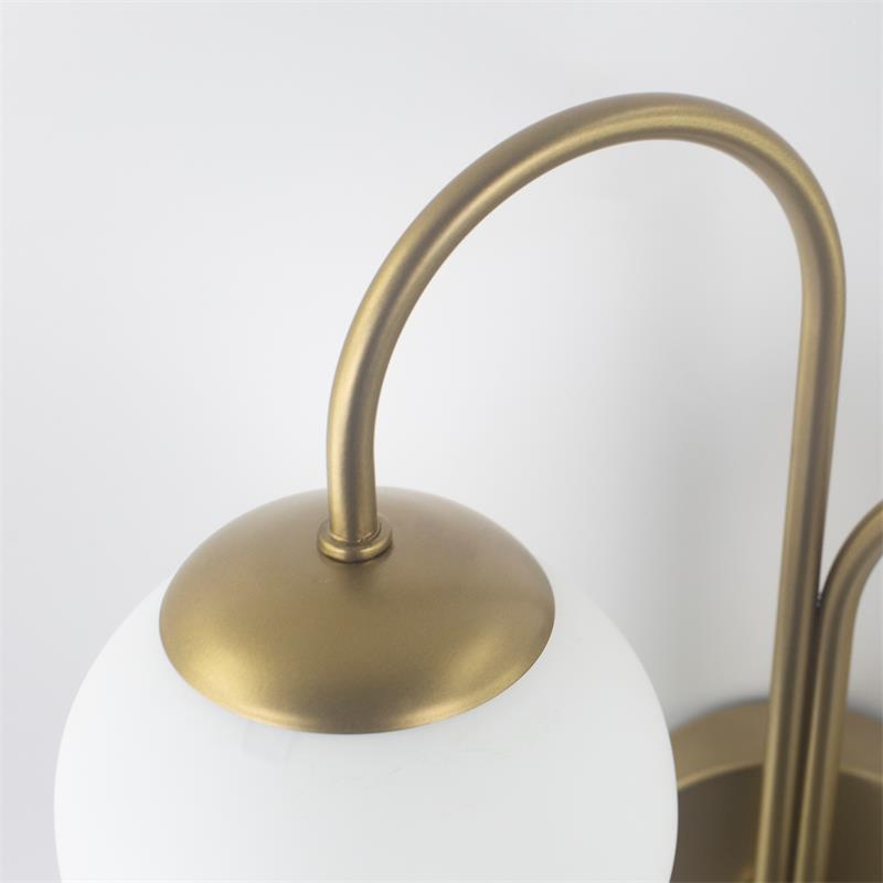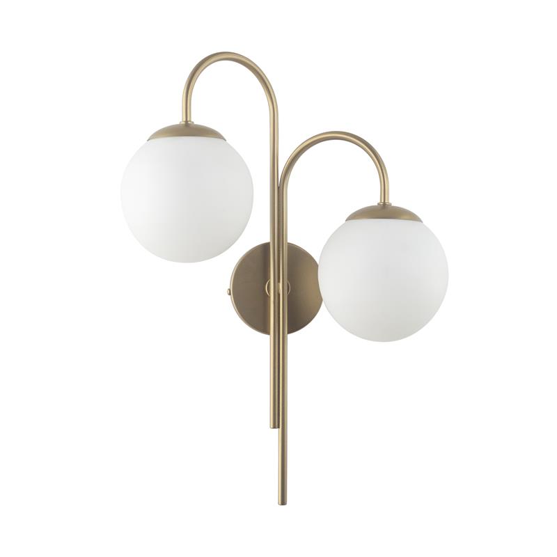 Serie CINTIA. Fabricado en metal en color dorado ,vidrio blanco , . Para su funcionamiento requiere 2 bombilla con casquillo E14. (bombillas no incluidas en la caja) .Apta para bombillas de tecnología Led cuya potencia máxima admitida por casquillo es de 15W. Con unas dimensiones de 37cm ancho por 18cm de profundo y 49cm de alto y un peso real aproximado de 1000 gramos.Muy fácil de limpiar con una gamuza humedecida en agua y jabón neutro, te recomendamos que evites el uso de productos químicos que puedan dañarla.