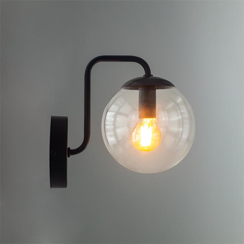 Serie CINTIA. Fabricado en metal en color negro ,vidrio transparente , . Para su funcionamiento requiere 1 bombilla con casquillo E14. (bombillas no incluidas en la caja) .Apta para bombillas de tecnología Led cuya potencia máxima admitida por casquillo es de 15W. Con unas dimensiones de 13cm ancho por 20cm de profundo y 20cm de alto y un peso real aproximado de 450 gramos.Muy fácil de limpiar con una gamuza humedecida en agua y jabón neutro, te recomendamos que evites el uso de productos químicos que puedan dañarla.