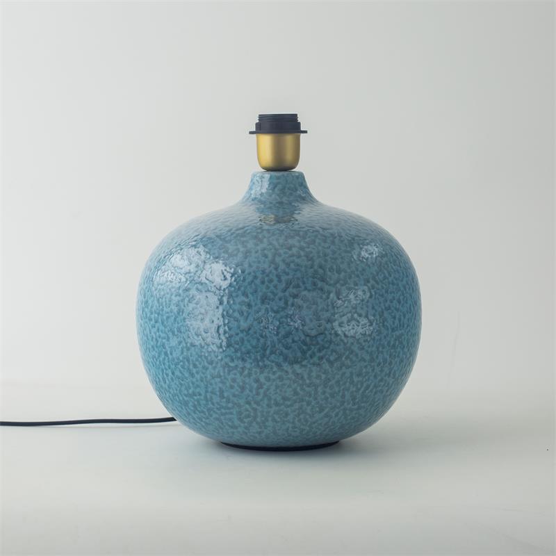 Serie GIANIRA. Fabricado en ceramica en color azul ,metal oro ,cable textil negro. Para su funcionamiento requiere 1 bombilla con casquillo E27. (bombillas no incluidas en la caja) .Apta para bombillas de tecnología Led cuya potencia máxima admitida por casquillo es de 15W. Con unas dimensiones de 28cm ancho por 28cm de profundo y 32cm de alto y un peso real aproximado de 2680 gramos.Muy fácil de limpiar con una gamuza humedecida en agua y jabón neutro, te recomendamos que evites el uso de productos químicos que puedan dañarla.
