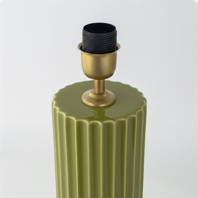 Serie TRIANA. Fabricado en ceramica en color verde ,metal oro ,cable textil negro. Para su funcionamiento requiere 1 bombilla con casquillo E27. (bombillas no incluidas en la caja) .Apta para bombillas de tecnología Led cuya potencia máxima admitida por casquillo es de 15W. Con unas dimensiones de 12cm ancho por 12cm de profundo y 45cm de alto y un peso real aproximado de 1620 gramos.Muy fácil de limpiar con una gamuza humedecida en agua y jabón neutro, te recomendamos que evites el uso de productos químicos que puedan dañarla.