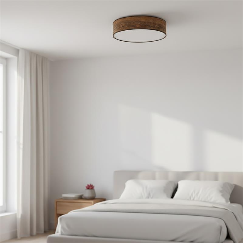 Serie AITANA. Fabricado en madera en color nogal ,pvc blanco , . Para su funcionamiento requiere 2 bombilla con casquillo E27. (bombillas no incluidas en la caja) .Apta para bombillas de tecnología Led cuya potencia máxima admitida por casquillo es de 15W. Con unas dimensiones de 40cm ancho por 40cm de profundo y 12cm de alto y un peso real aproximado de 300 gramos.Muy fácil de limpiar con una gamuza humedecida en agua y jabón neutro, te recomendamos que evites el uso de productos químicos que puedan dañarla.