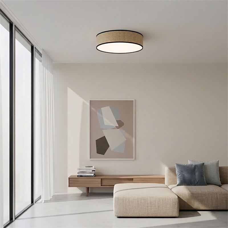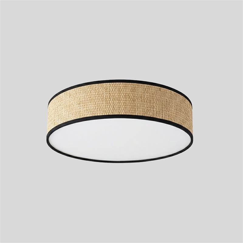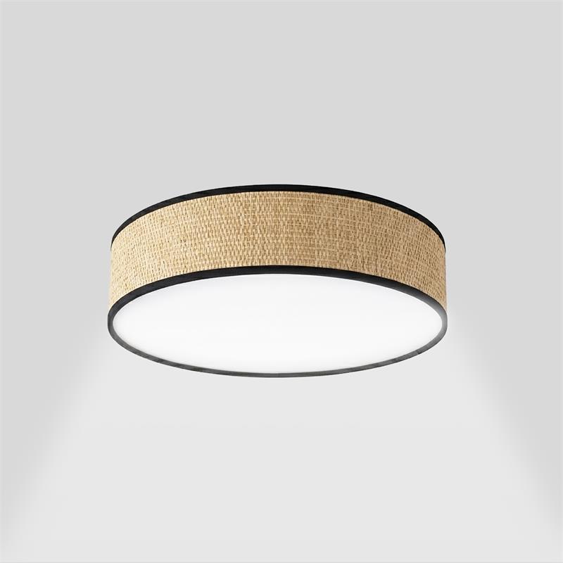 Serie ENZO II. Fabricado en rafia en color marrón. ,pvc blanco , . Para su funcionamiento requiere 2 bombilla con casquillo E27. (bombillas no incluidas en la caja) .Apta para bombillas de tecnología Led cuya potencia máxima admitida por casquillo es de 15W. Con unas dimensiones de 30cm ancho por 30cm de profundo y 11cm de alto y un peso real aproximado de 460 gramos.Muy fácil de limpiar con una gamuza humedecida en agua y jabón neutro, te recomendamos que evites el uso de productos químicos que puedan dañarla.