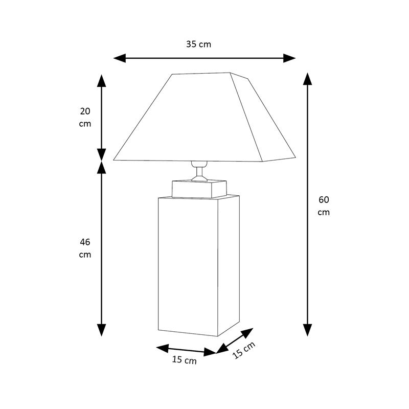 Serie ALBA. Fabricado en ceramica en color beige ,textil beige ,cable textil negro. Para su funcionamiento requiere 1 bombilla con casquillo E27. (bombillas no incluidas en la caja) .Apta para bombillas de tecnología Led cuya potencia máxima admitida por casquillo es de 15W. Con unas dimensiones de 35cm ancho por 35cm de profundo y 60cm de alto y un peso real aproximado de 2870 gramos.Muy fácil de limpiar con una gamuza humedecida en agua y jabón neutro, te recomendamos que evites el uso de productos químicos que puedan dañarla.