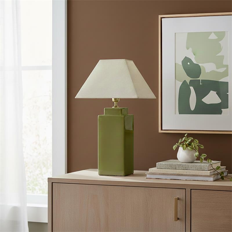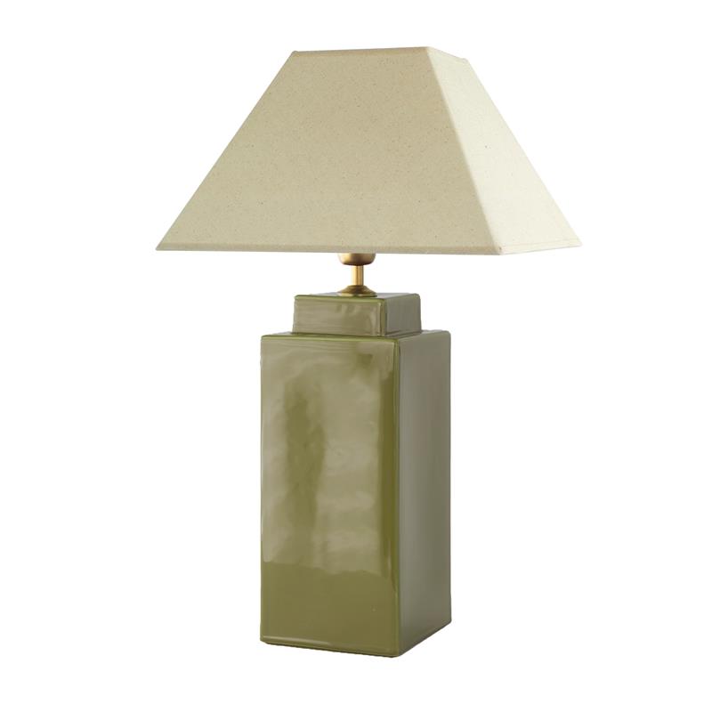 Serie ALBA. Fabricado en ceramica en color verde ,textil beige ,cable textil negro. Para su funcionamiento requiere 1 bombilla con casquillo E27. (bombillas no incluidas en la caja) .Apta para bombillas de tecnología Led cuya potencia máxima admitida por casquillo es de 15W. Con unas dimensiones de 35cm ancho por 35cm de profundo y 60cm de alto y un peso real aproximado de 2870 gramos.Muy fácil de limpiar con una gamuza humedecida en agua y jabón neutro, te recomendamos que evites el uso de productos químicos que puedan dañarla.