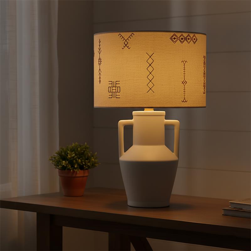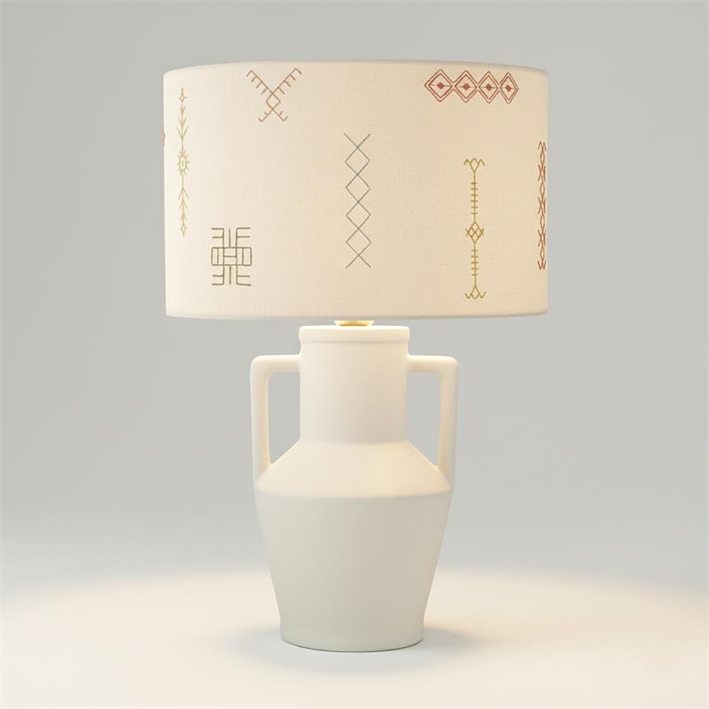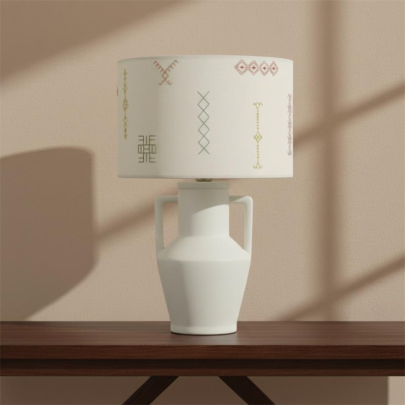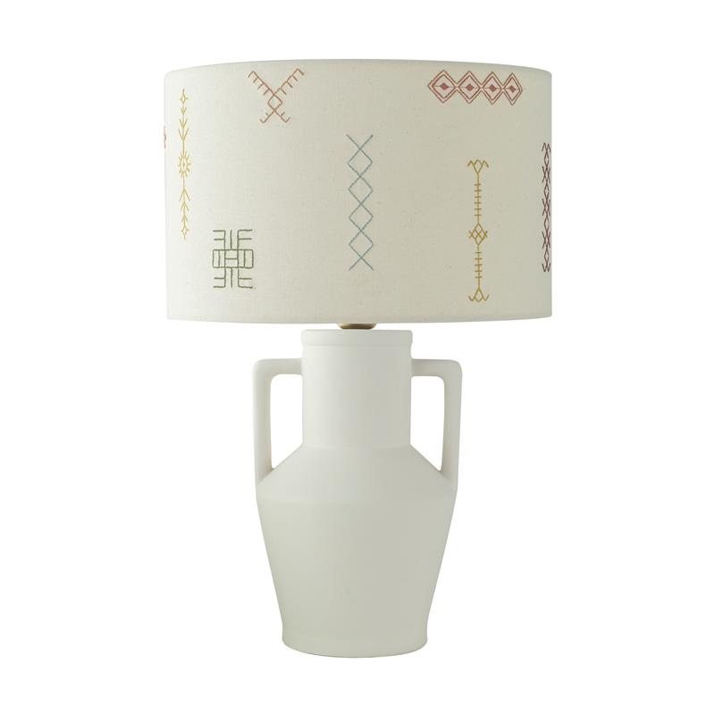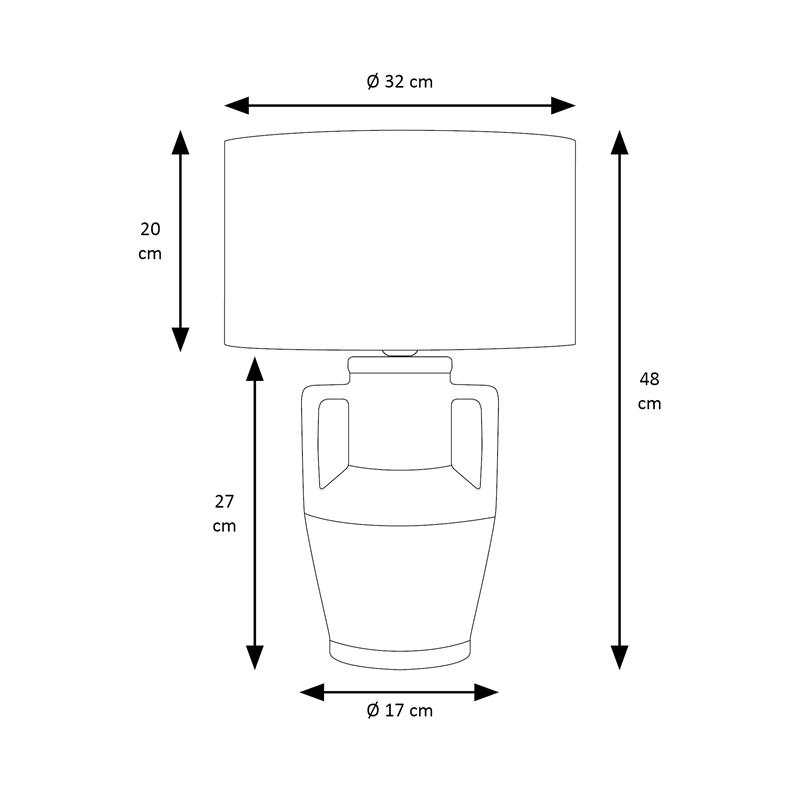 Serie JADE. Fabricado en ceramica en color blanco ,textil beige ,cable pvc blanco. Para su funcionamiento requiere 1 bombilla con casquillo E27. (bombillas no incluidas en la caja) .Apta para bombillas de tecnología Led cuya potencia máxima admitida por casquillo es de 15W. Con unas dimensiones de 32cm ancho por 32cm de profundo y 48cm de alto y un peso real aproximado de 1480 gramos.Muy fácil de limpiar con una gamuza humedecida en agua y jabón neutro, te recomendamos que evites el uso de productos químicos que puedan dañarla.