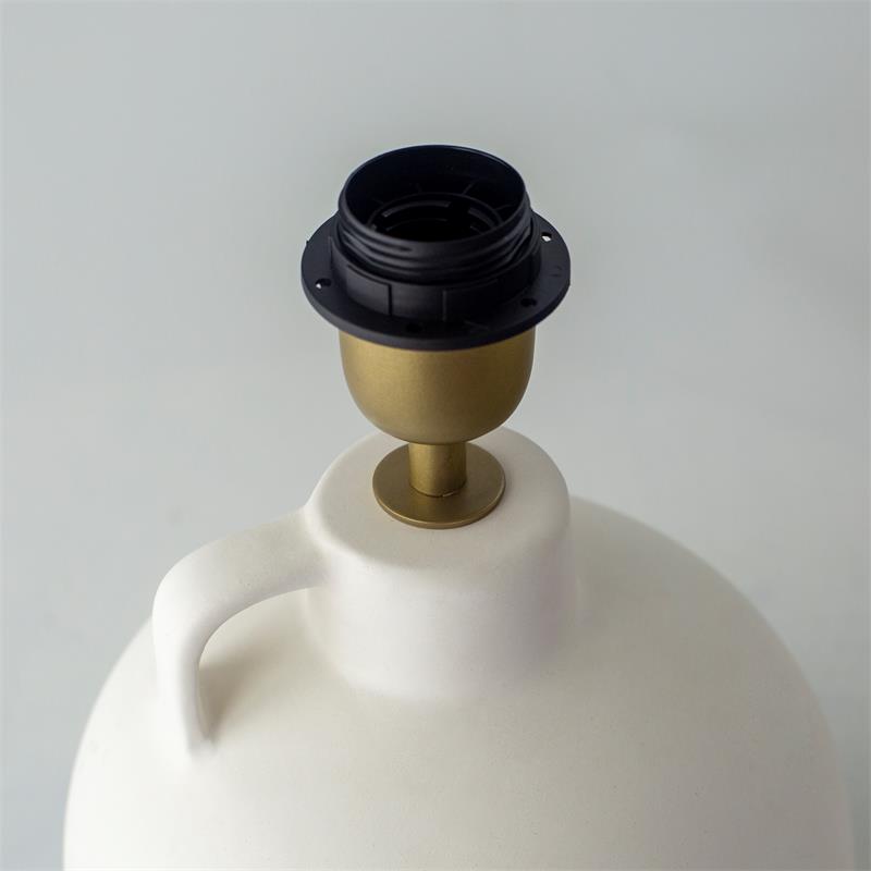 Serie ELVIRA. Fabricado en cerámica en color blanco ,lino blanco ,cable pvc blanco. Para su funcionamiento requiere 1 bombilla con casquillo E27. (bombillas no incluidas en la caja) .Apta para bombillas de tecnología Led cuya potencia máxima admitida por casquillo es de 15W. Con unas dimensiones de 25cm ancho por 25cm de profundo y 45cm de alto y un peso real aproximado de 1380 gramos.Muy fácil de limpiar con una gamuza humedecida en agua y jabón neutro, te recomendamos que evites el uso de productos químicos que puedan dañarla.