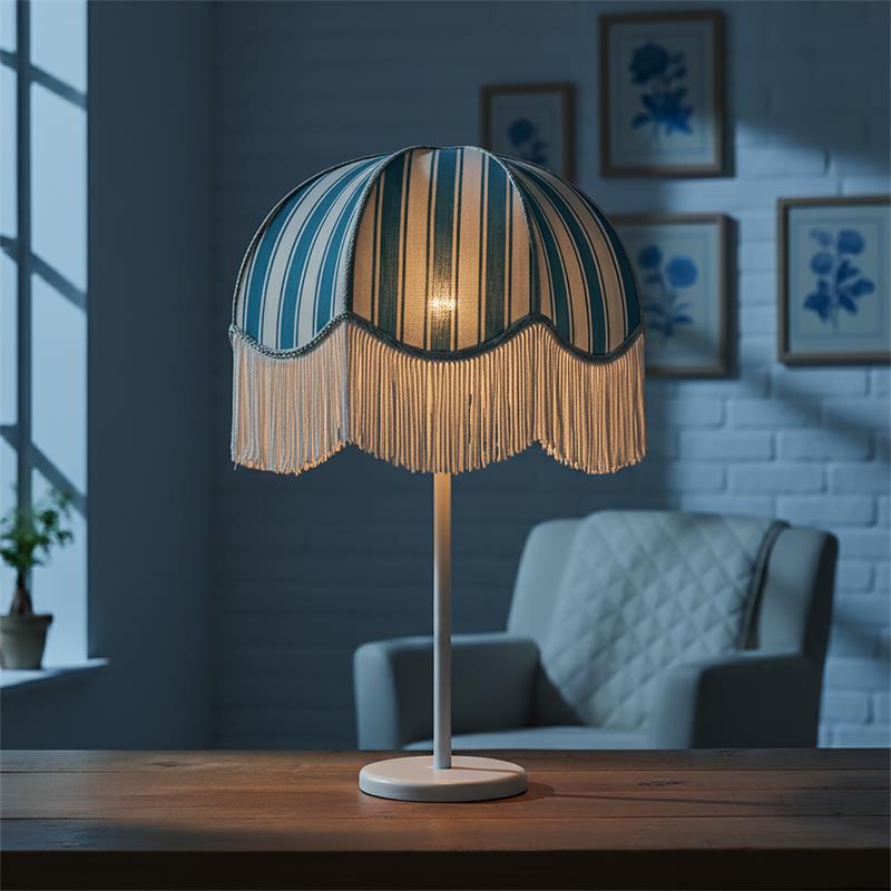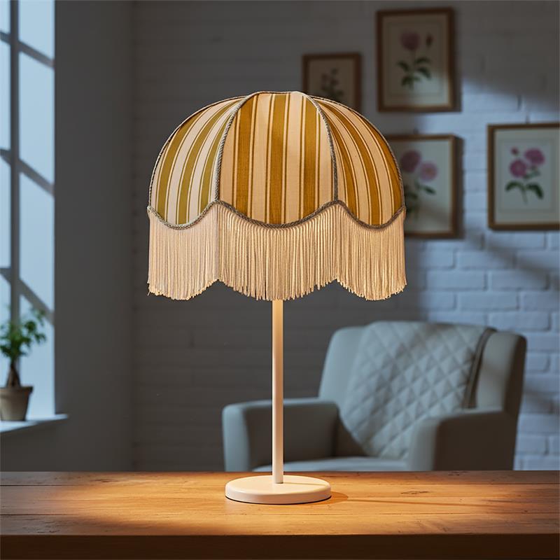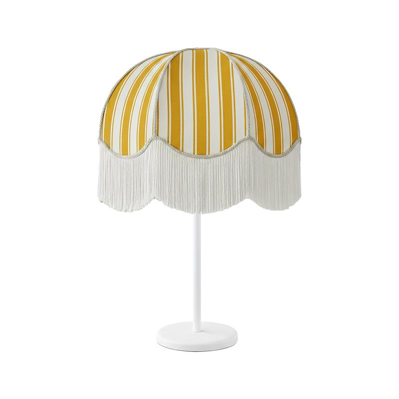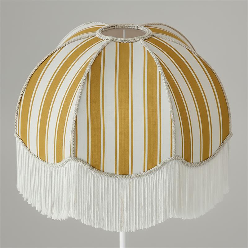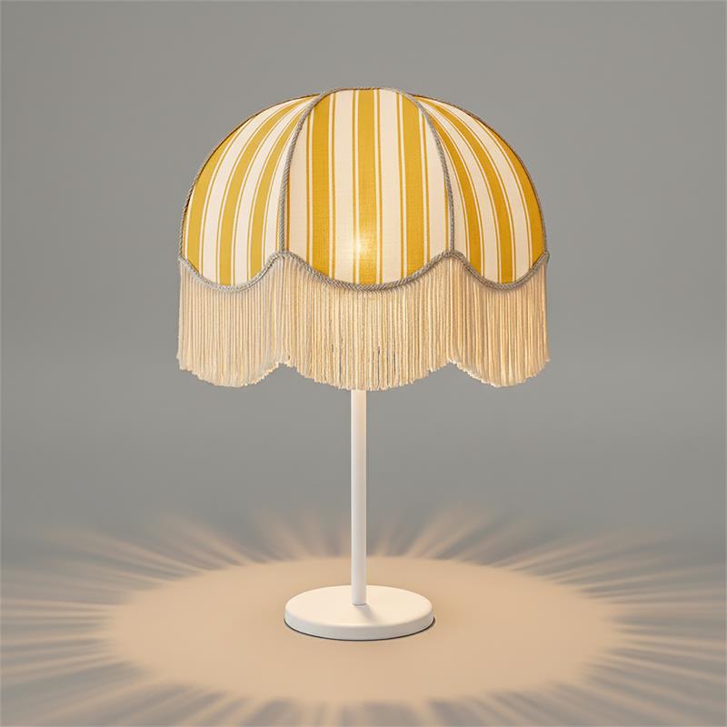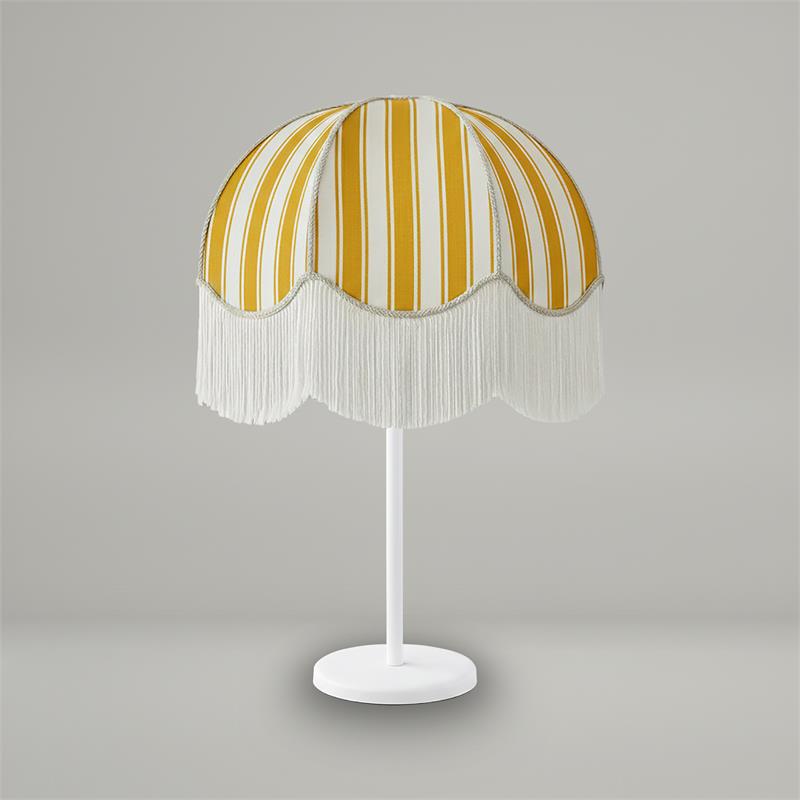 Serie LEOCADIA. Fabricado en tejido en color amarillo ,textil blanco ,base metal blanco. Para su funcionamiento requiere 3 bombilla con casquillo E27. (bombillas no incluidas en la caja) .Apta para bombillas de tecnología Led cuya potencia máxima admitida por casquillo es de 15W. Con unas dimensiones de 40cm ancho por 40cm de profundo y 33cm de alto y un peso real aproximado de 2100 gramos.Muy fácil de limpiar con una gamuza humedecida en agua y jabón neutro, te recomendamos que evites el uso de productos químicos que puedan dañarla.