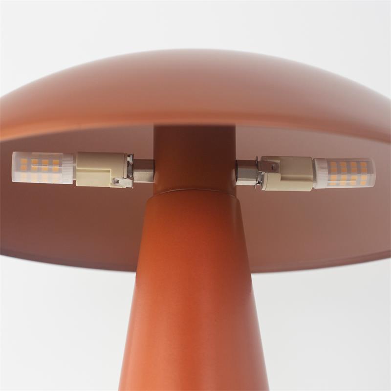 Serie LYDIA. Fabricado en metal en color terracota ,metal terracota ,cable pvc negro. Para su funcionamiento requiere 2 bombilla con casquillo G9. (bombillas no incluidas en la caja) .Apta para bombillas de tecnología Led cuya potencia máxima admitida por casquillo es de 9W. Con unas dimensiones de 30cm ancho por 30cm de profundo y 35cm de alto y un peso real aproximado de 980 gramos.Muy fácil de limpiar con una gamuza humedecida en agua y jabón neutro, te recomendamos que evites el uso de productos químicos que puedan dañarla.