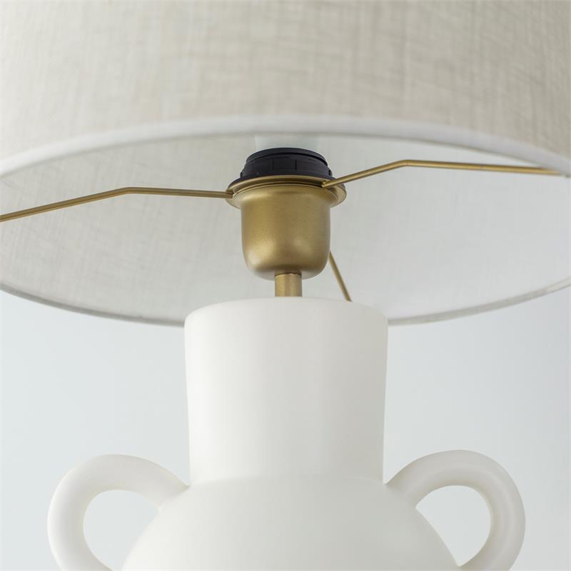 Serie MENCÍA. Fabricado en cerámica en color blanco ,lino beige ,cable pvc blanco. Para su funcionamiento requiere 1 bombilla con casquillo E27. (bombillas no incluidas en la caja) .Apta para bombillas de tecnología Led cuya potencia máxima admitida por casquillo es de 15W. Con unas dimensiones de 32cm ancho por 32cm de profundo y 47cm de alto y un peso real aproximado de 1500 gramos.Muy fácil de limpiar con una gamuza humedecida en agua y jabón neutro, te recomendamos que evites el uso de productos químicos que puedan dañarla.