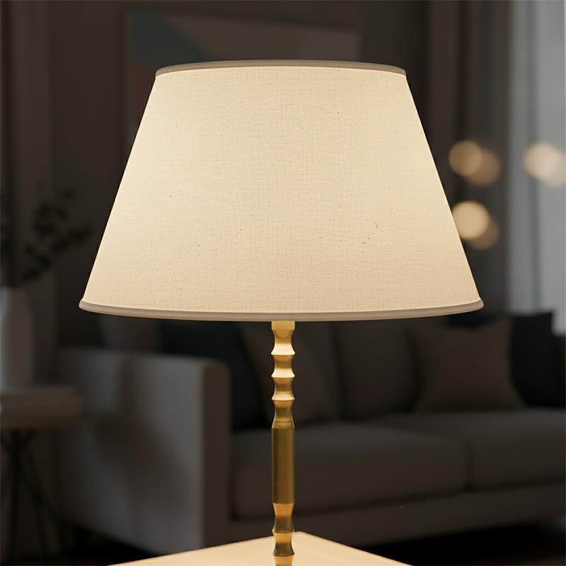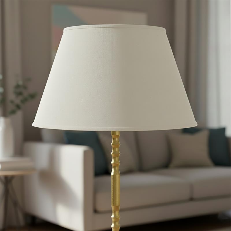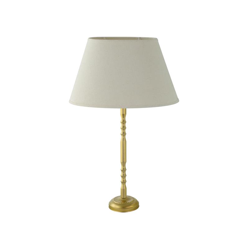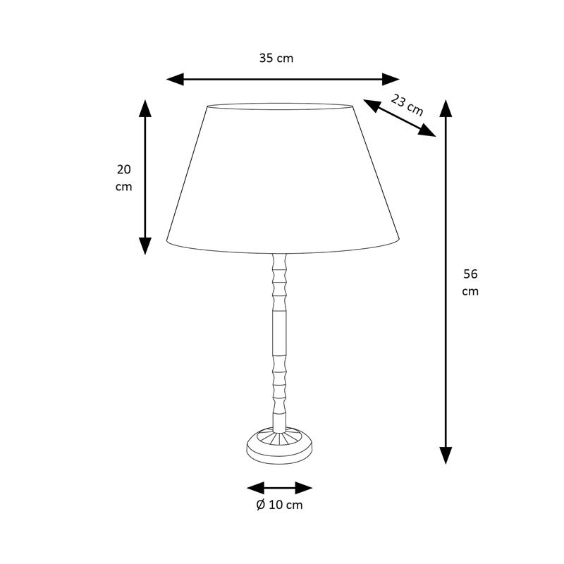 Serie SONIA. Fabricado en metal en color dorado ,textil blanco ,cable pvc negro. Para su funcionamiento requiere 1 bombilla con casquillo E27. (bombillas no incluidas en la caja) .Apta para bombillas de tecnología Led cuya potencia máxima admitida por casquillo es de 15W. Con unas dimensiones de 35cm ancho por 23cm de profundo y 56cm de alto y un peso real aproximado de 700 gramos.Muy fácil de limpiar con una gamuza humedecida en agua y jabón neutro, te recomendamos que evites el uso de productos químicos que puedan dañarla.