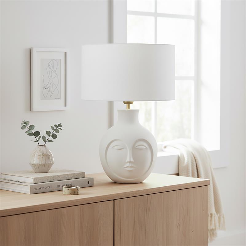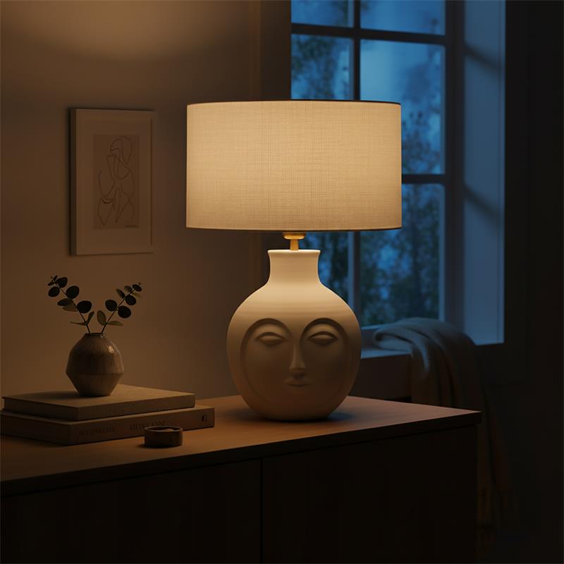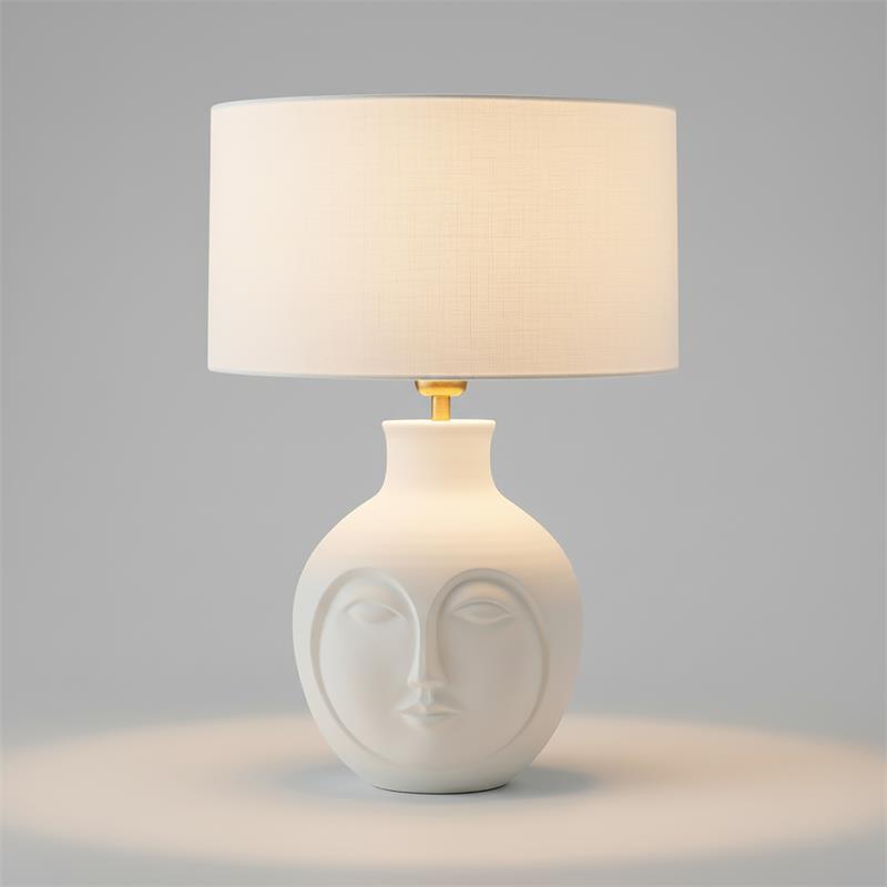Serie GEMMA. Fabricado en cerámica en color blanco ,lino blanco ,cable pvc blanco. Para su funcionamiento requiere 1 bombilla con casquillo E27. (bombillas no incluidas en la caja) .Apta para bombillas de tecnología Led cuya potencia máxima admitida por casquillo es de 15W. Con unas dimensiones de 30cm ancho por 30cm de profundo y 47cm de alto y un peso real aproximado de 1500 gramos.Muy fácil de limpiar con una gamuza humedecida en agua y jabón neutro, te recomendamos que evites el uso de productos químicos que puedan dañarla.
