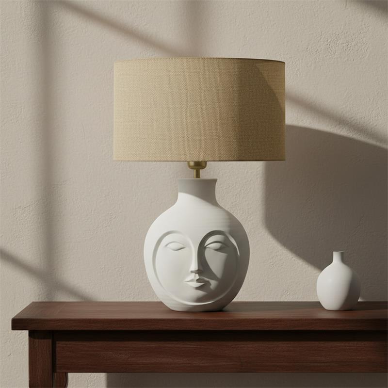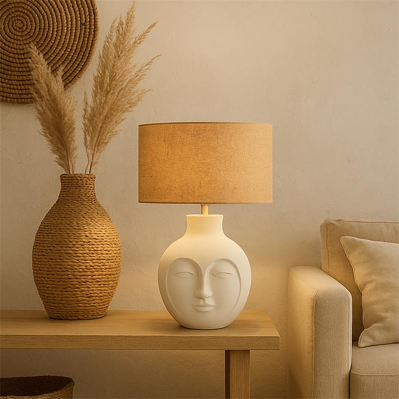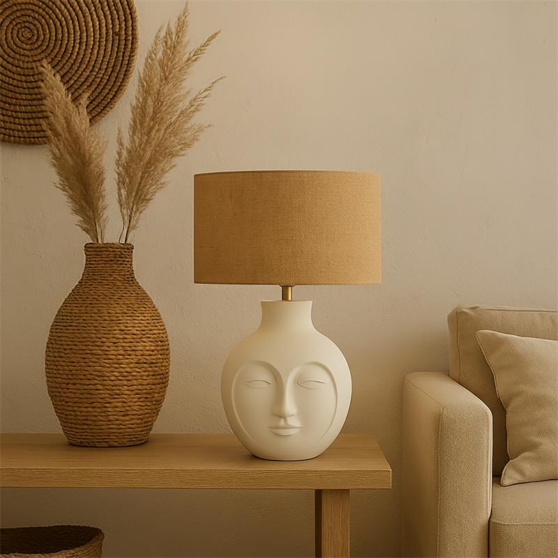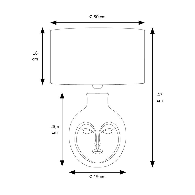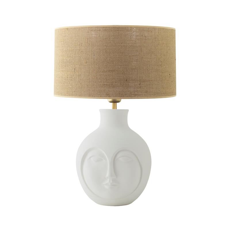 Serie GEMMA. Fabricado en cerámica en color blanco ,yute natural ,cable pvc blanco. Para su funcionamiento requiere 1 bombilla con casquillo E27. (bombillas no incluidas en la caja) .Apta para bombillas de tecnología Led cuya potencia máxima admitida por casquillo es de 15W. Con unas dimensiones de 30cm ancho por 30cm de profundo y 47cm de alto y un peso real aproximado de 1500 gramos.Muy fácil de limpiar con una gamuza humedecida en agua y jabón neutro, te recomendamos que evites el uso de productos químicos que puedan dañarla.