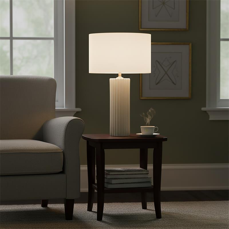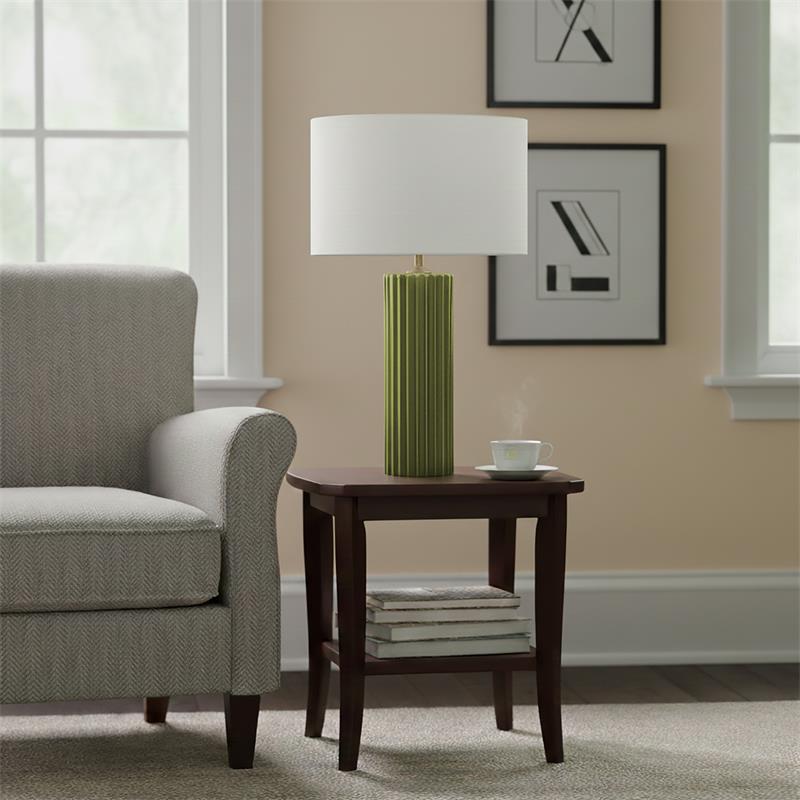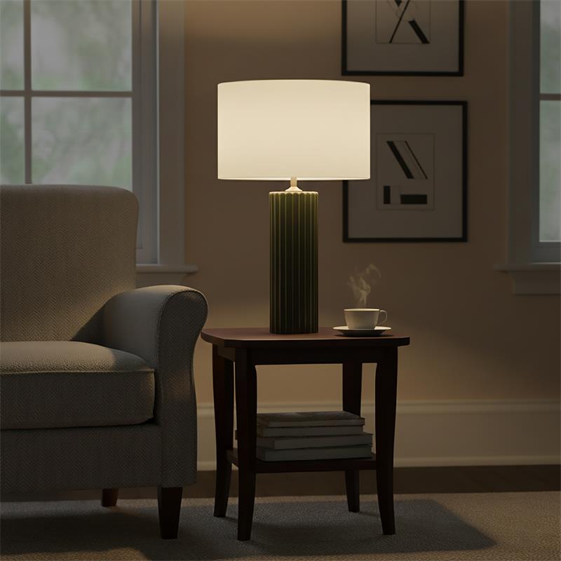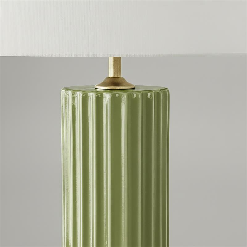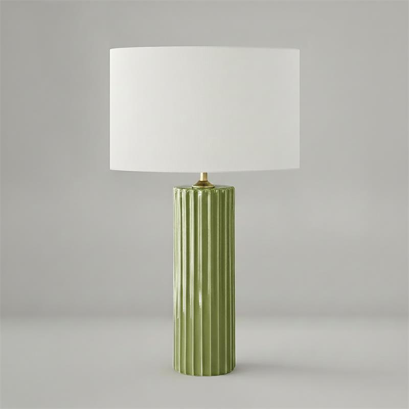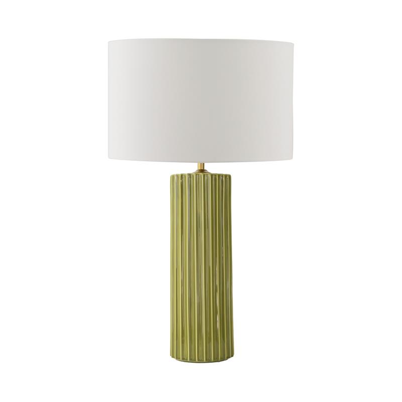Serie TRIANA. Fabricado en ceramica en color verde ,textil blanco ,cable textil negro. Para su funcionamiento requiere 1 bombilla con casquillo E27. (bombillas no incluidas en la caja) .Apta para bombillas de tecnología Led cuya potencia máxima admitida por casquillo es de 15W. Con unas dimensiones de 35cm ancho por 35cm de profundo y 60cm de alto y un peso real aproximado de 1910 gramos.Muy fácil de limpiar con una gamuza humedecida en agua y jabón neutro, te recomendamos que evites el uso de productos químicos que puedan dañarla.