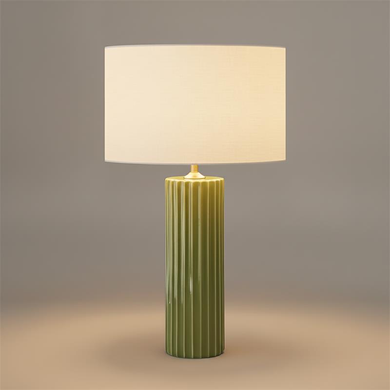 Sobremesa de la serie TRIANA en color VERDE. Realizado en cerámica con cable textil negro. Se caracteriza por el diseño retro y dando como resultado una bonita composición para decorar e iluminar cualquier estancia del hogar o lugar de trabajo. Posee un portalámparas E27 apto para bombillas led. Bombillas no incluidas. Tiene una dimensión de 60X35X35 centímetros. Disponible en las combinaciones de colores verde, gris, beige y rojo.