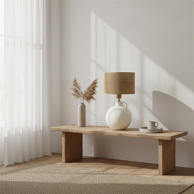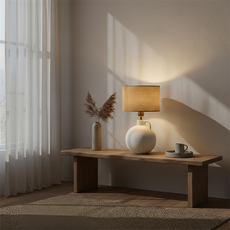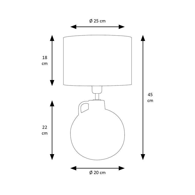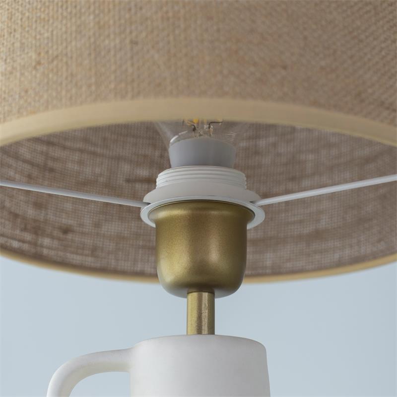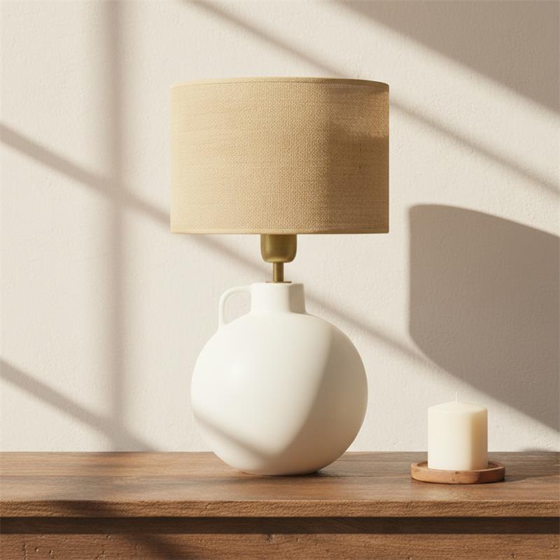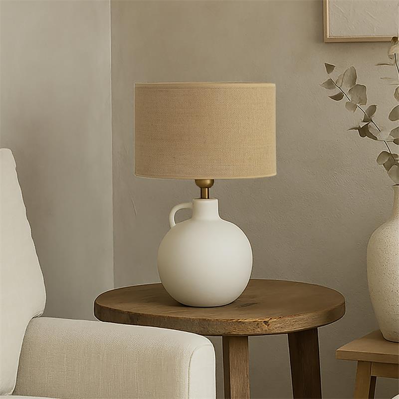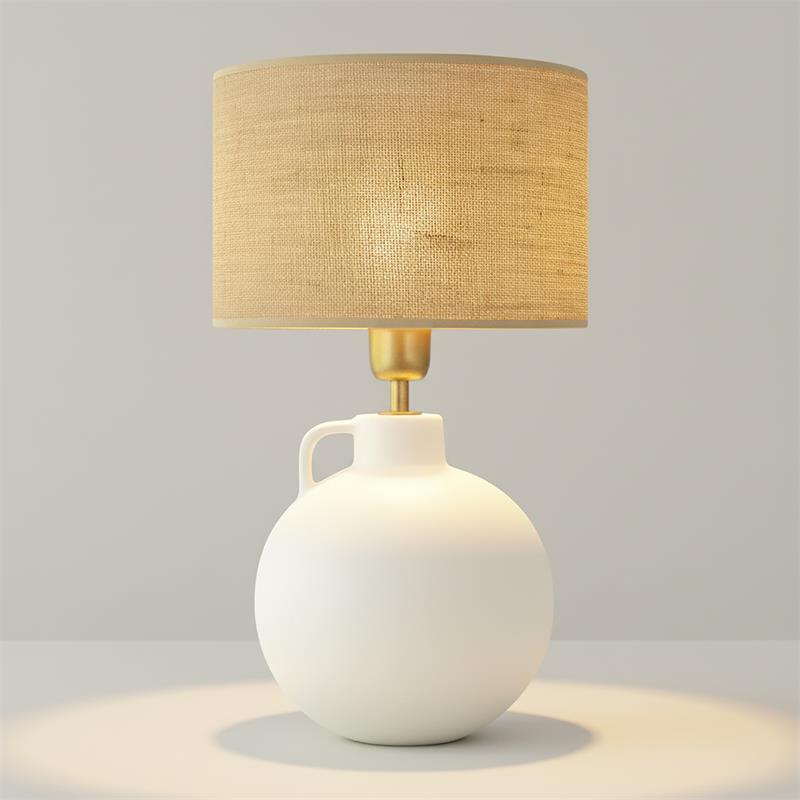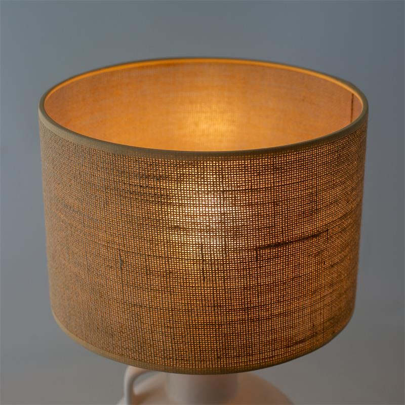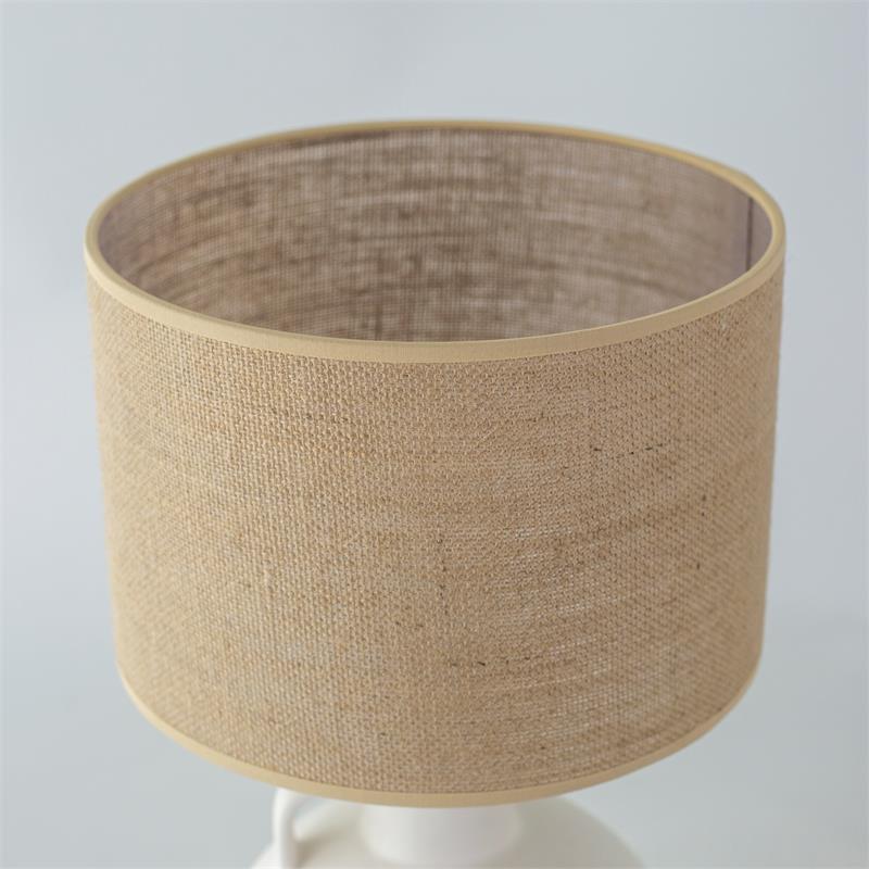 Serie ELVIRA. Fabricado en cerámica en color blanco ,yute natural ,cable pvc blanco. Para su funcionamiento requiere 1 bombilla con casquillo E27. (bombillas no incluidas en la caja) .Apta para bombillas de tecnología Led cuya potencia máxima admitida por casquillo es de 15W. Con unas dimensiones de 25cm ancho por 25cm de profundo y 45cm de alto y un peso real aproximado de 1380 gramos.Muy fácil de limpiar con una gamuza humedecida en agua y jabón neutro, te recomendamos que evites el uso de productos químicos que puedan dañarla.