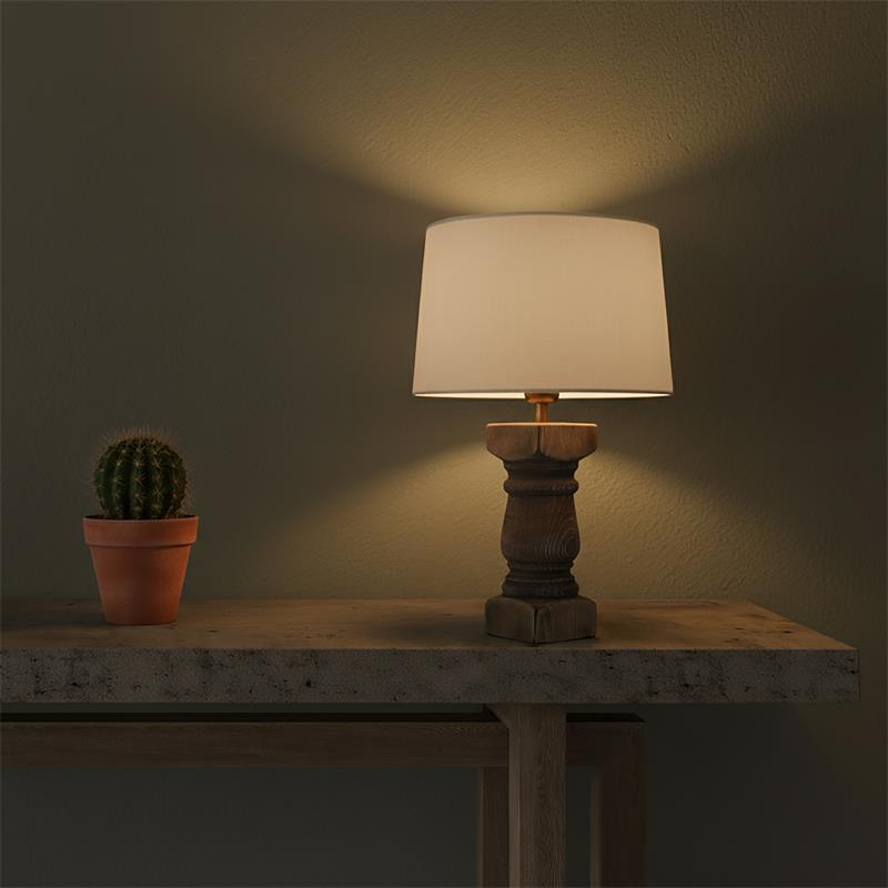 Forma parte de nuestra gama de productos de la serie SIGRID. Fabricado en madera en color envejecido ,lino beige ,cable textil negro. Para su funcionamiento requiere 1 bombilla con casquillo E27. (bombillas no incluidas en la caja) .Apta para bombillas de tecnología Led cuya potencia máxima admitida por casquillo es de 15W. Con unas dimensiones de 28cm ancho por 28cm de profundo y 44cm de alto y un peso real aproximado de 1350 gramos.Muy fácil de limpiar con una gamuza humedecida en agua y jabón neutro, te recomendamos que evites el uso de productos químicos que puedan dañarla.