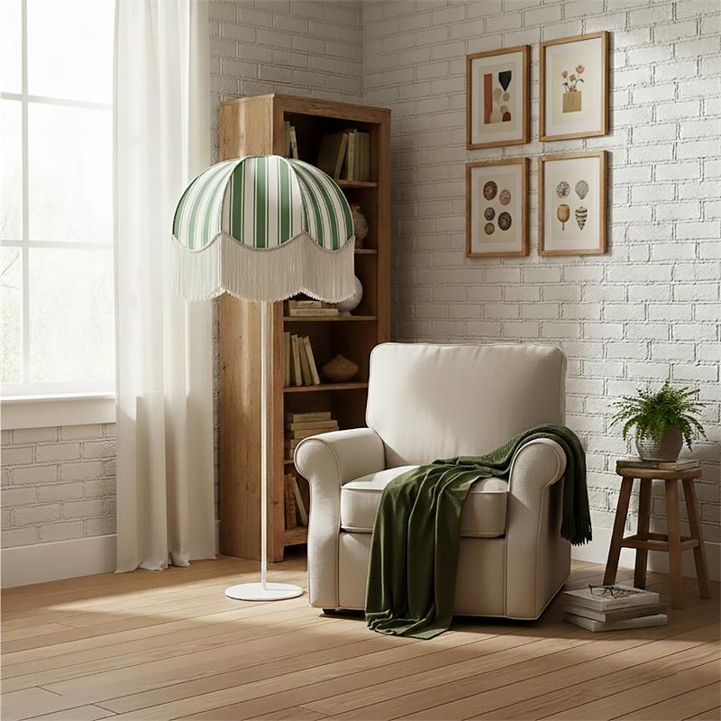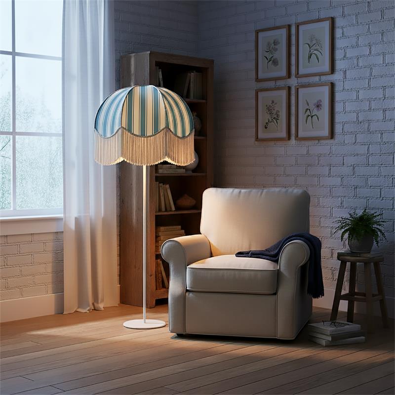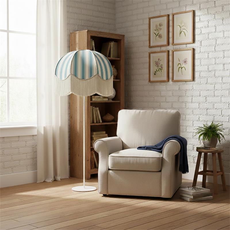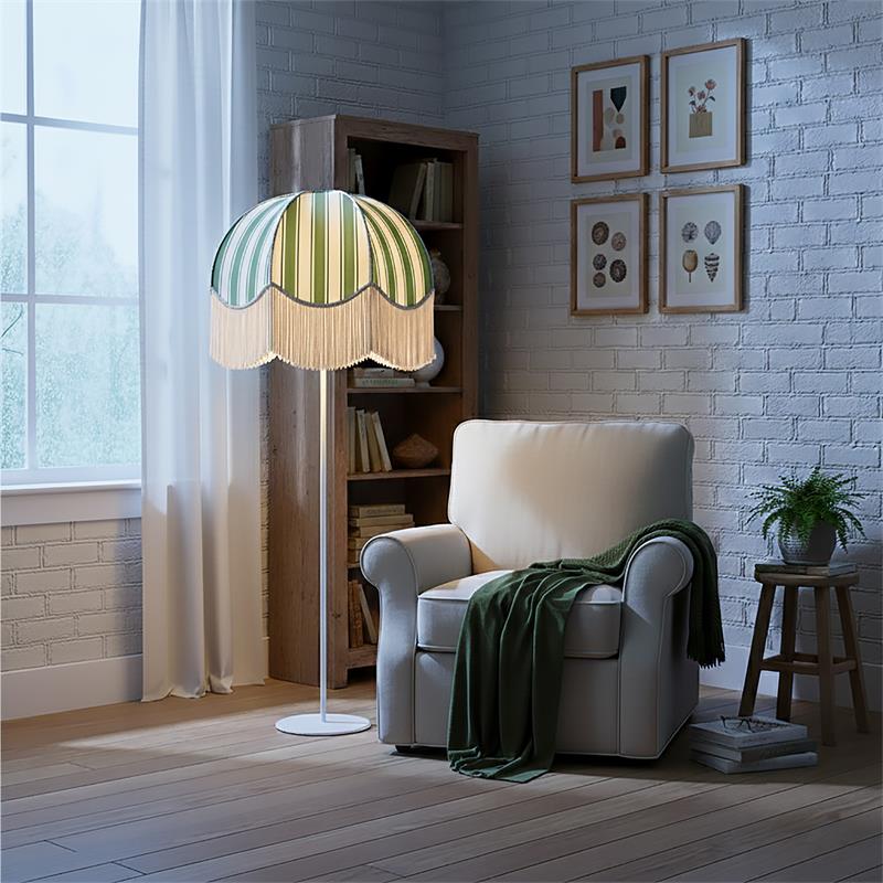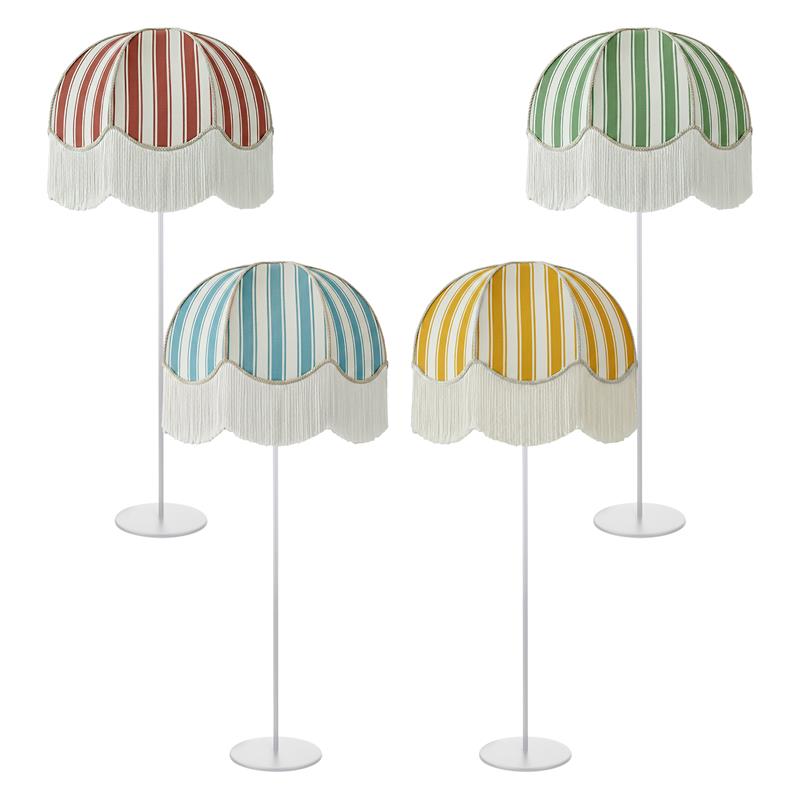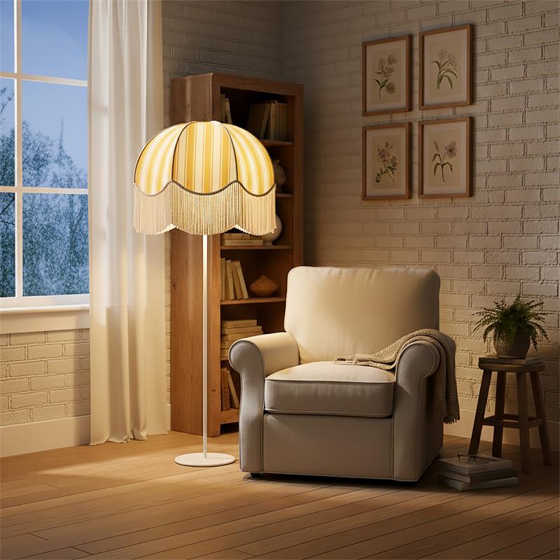 Serie LEOCADIA. Fabricado en tejido en color amarillo ,textil blanco ,base metal blanco. Para su funcionamiento requiere 3 bombilla con casquillo E27. (bombillas no incluidas en la caja) .Apta para bombillas de tecnología Led cuya potencia máxima admitida por casquillo es de 15W. Con unas dimensiones de 70cm ancho por 70cm de profundo y 165cm de alto y un peso real aproximado de 3400 gramos.Muy fácil de limpiar con una gamuza humedecida en agua y jabón neutro, te recomendamos que evites el uso de productos químicos que puedan dañarla.
