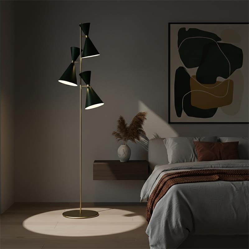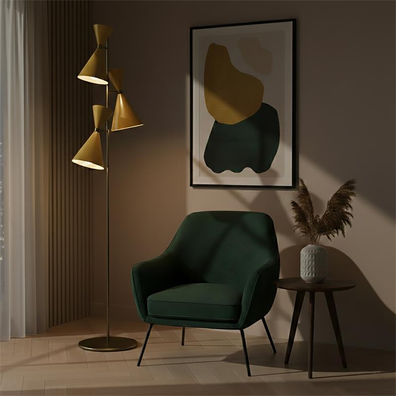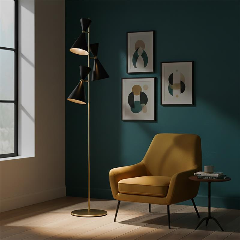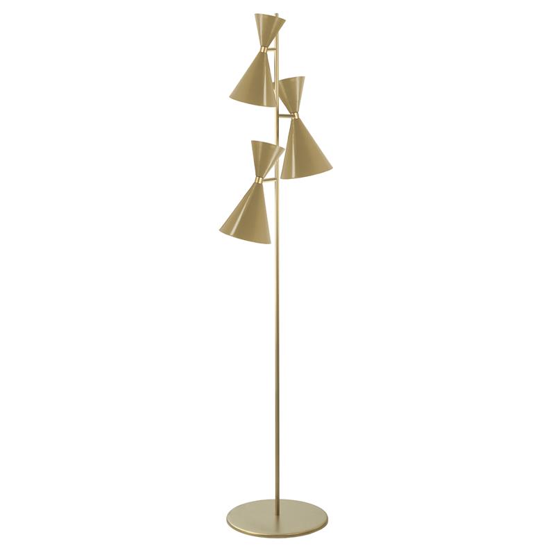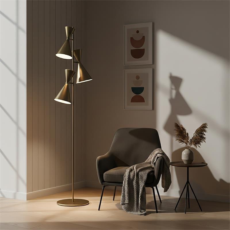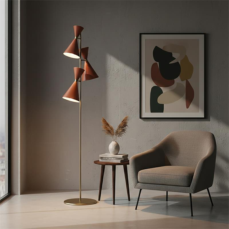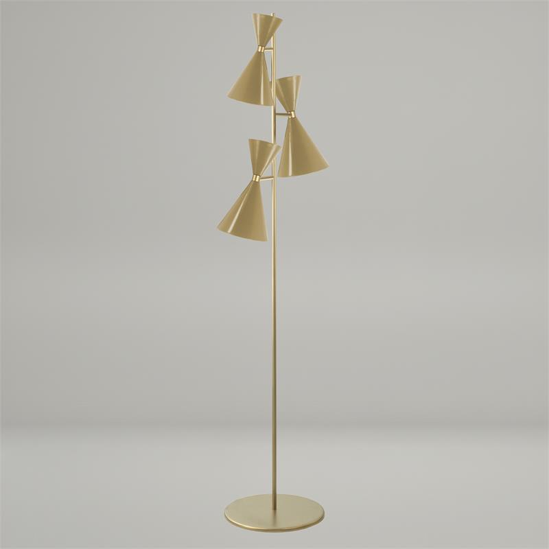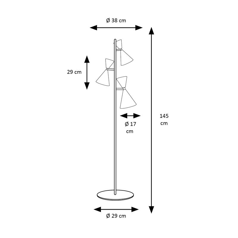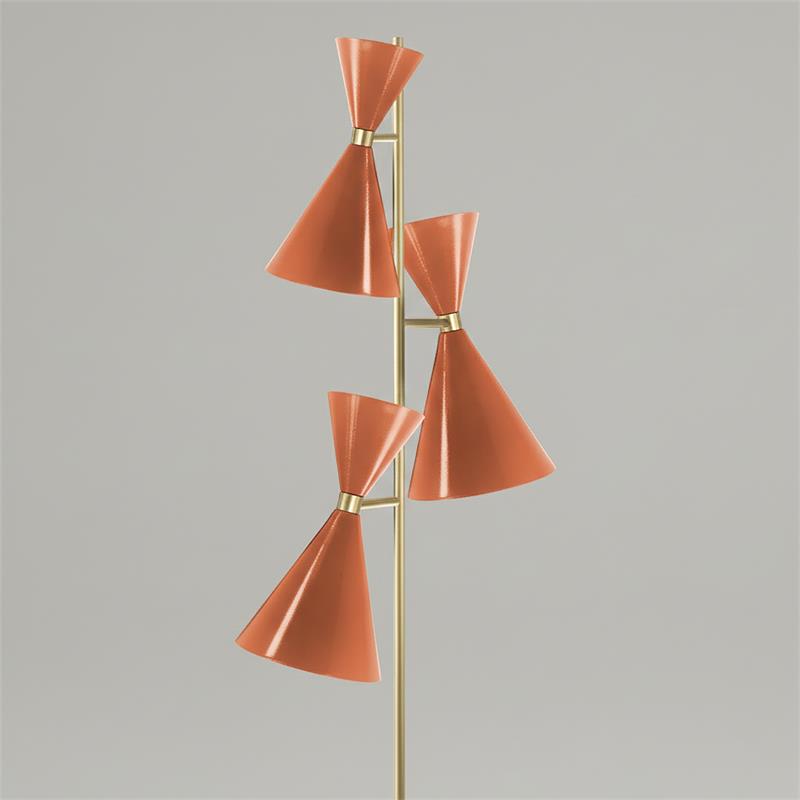 Serie XENA. Fabricado en metal en color terracota ,metal oro ,base metal oro. Para su funcionamiento requiere 3 bombilla con casquillo G9. (bombillas no incluidas en la caja) .Apta para bombillas de tecnología Led cuya potencia máxima admitida por casquillo es de 9W. Con unas dimensiones de 38cm ancho por 38cm de profundo y 145cm de alto y un peso real aproximado de 3100 gramos.Muy fácil de limpiar con una gamuza humedecida en agua y jabón neutro, te recomendamos que evites el uso de productos químicos que puedan dañarla.