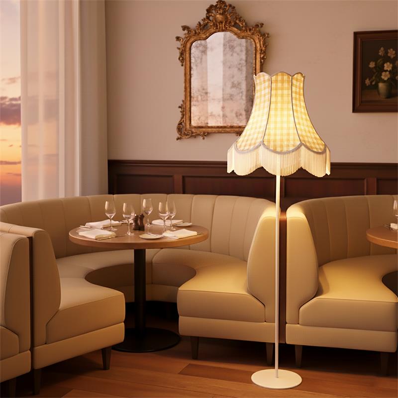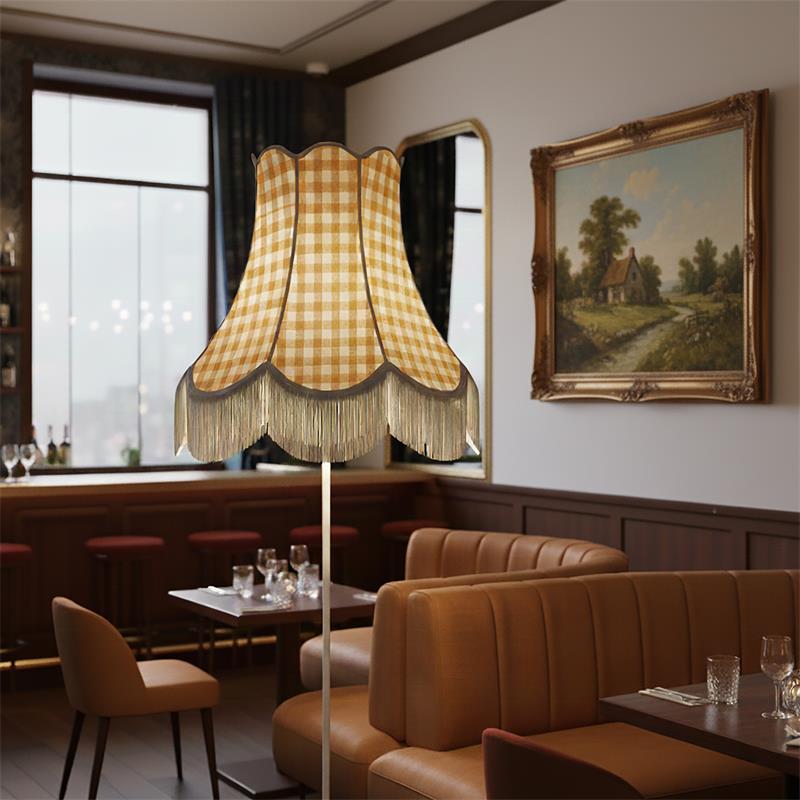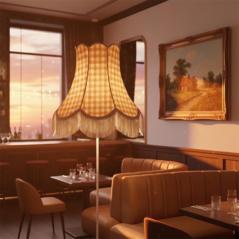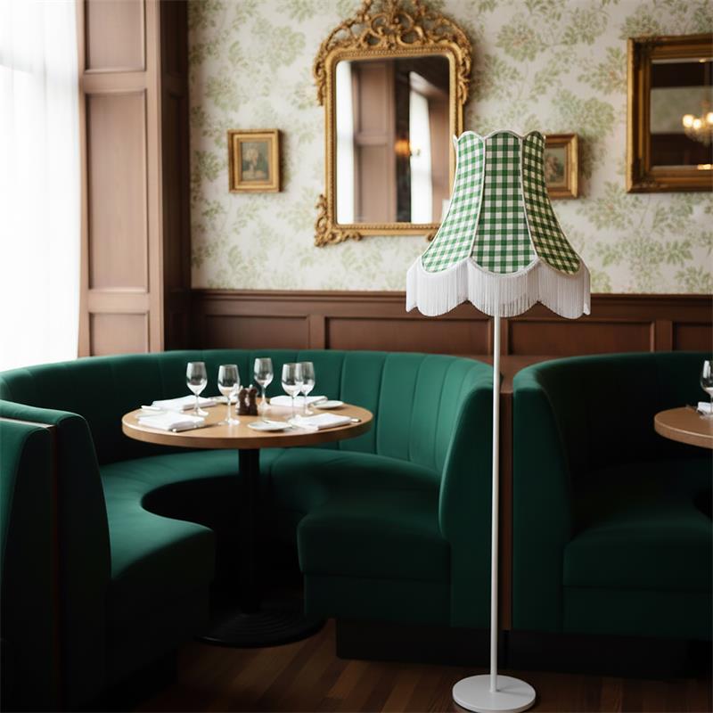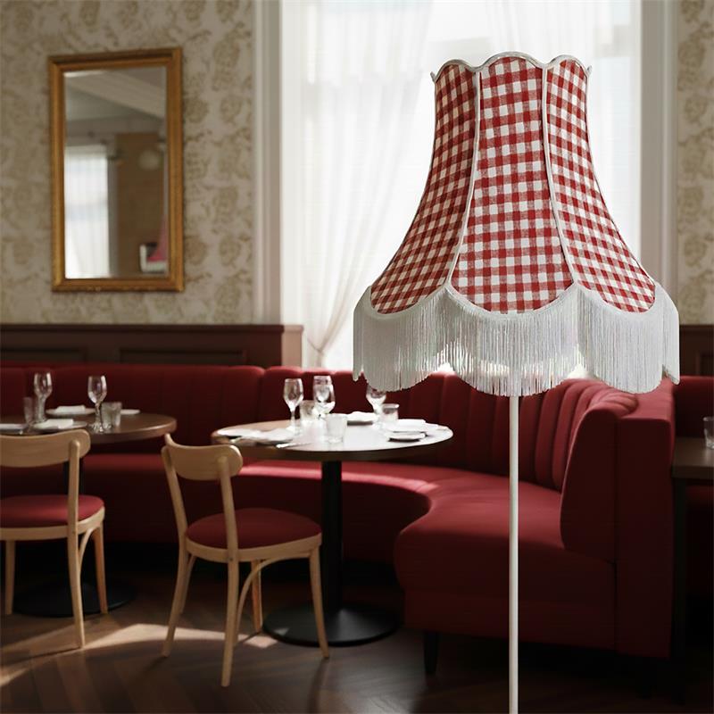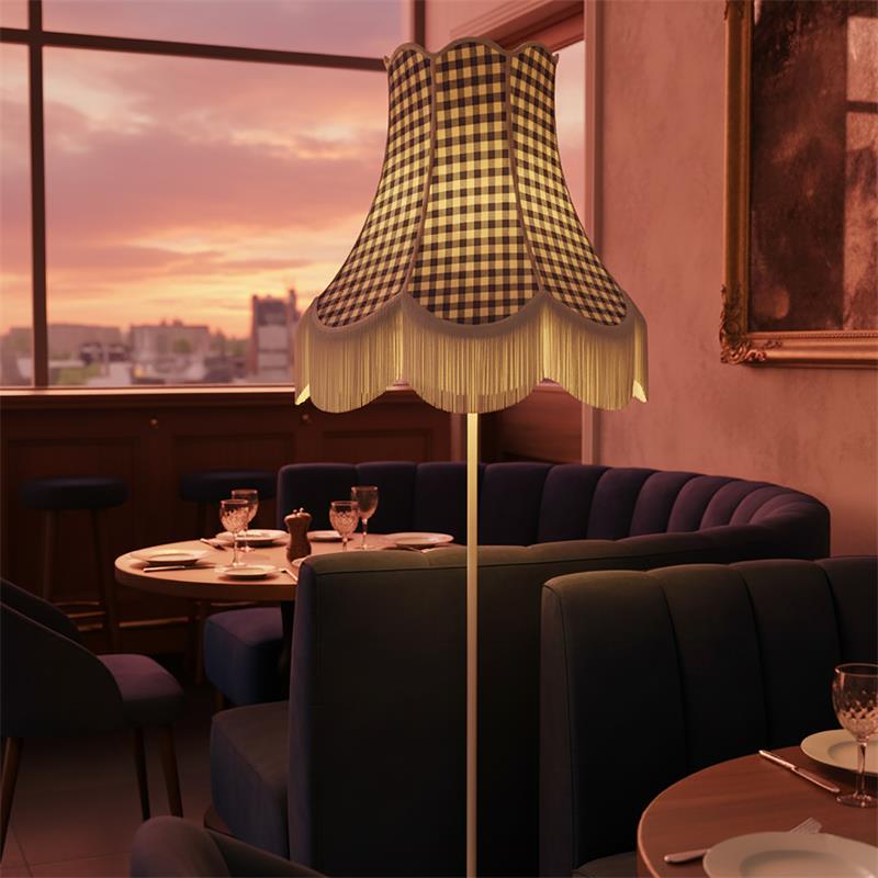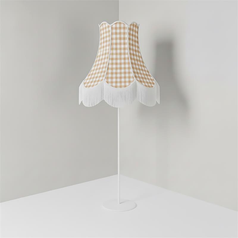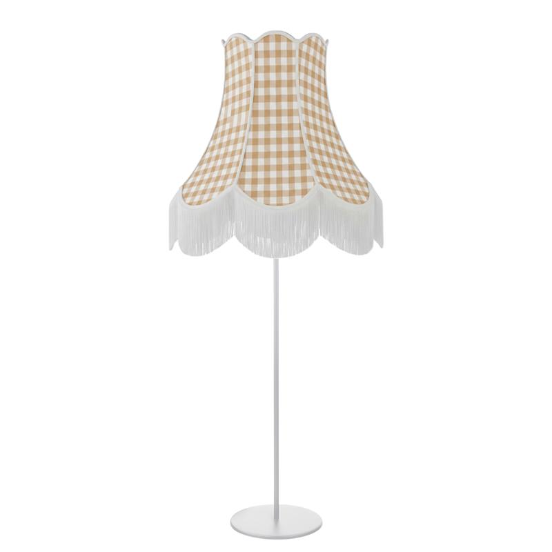 Serie CATALINA. Fabricado en tejido en color marrón. ,textil blanco ,base metal blanco. Para su funcionamiento requiere 3 bombilla con casquillo E27. (bombillas no incluidas en la caja) .Apta para bombillas de tecnología Led cuya potencia máxima admitida por casquillo es de 15W. Con unas dimensiones de 70cm ancho por 70cm de profundo y 165cm de alto y un peso real aproximado de 3440 gramos.Muy fácil de limpiar con una gamuza humedecida en agua y jabón neutro, te recomendamos que evites el uso de productos químicos que puedan dañarla.