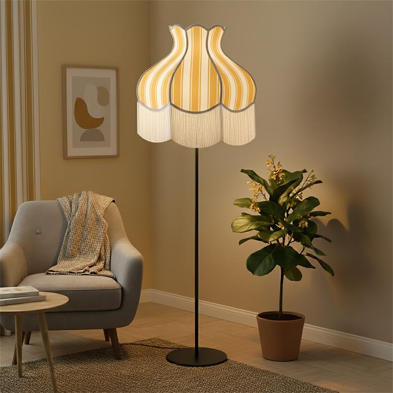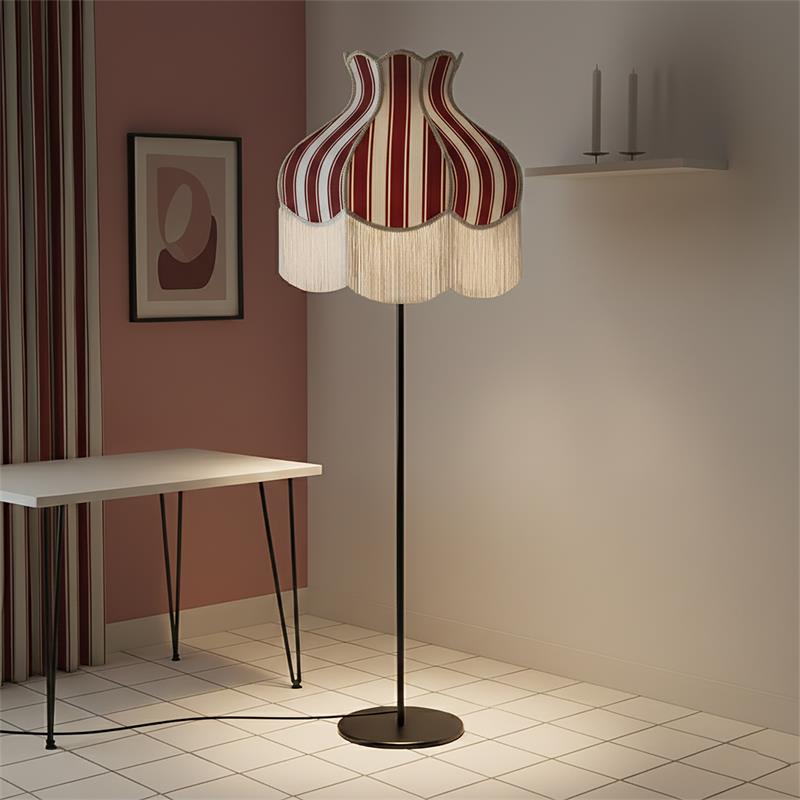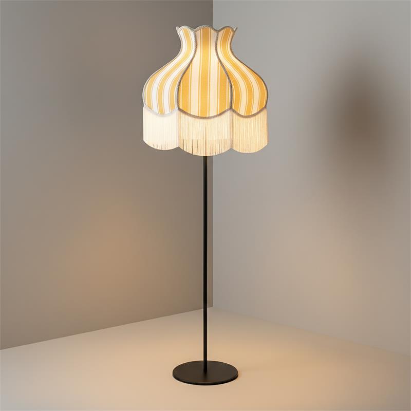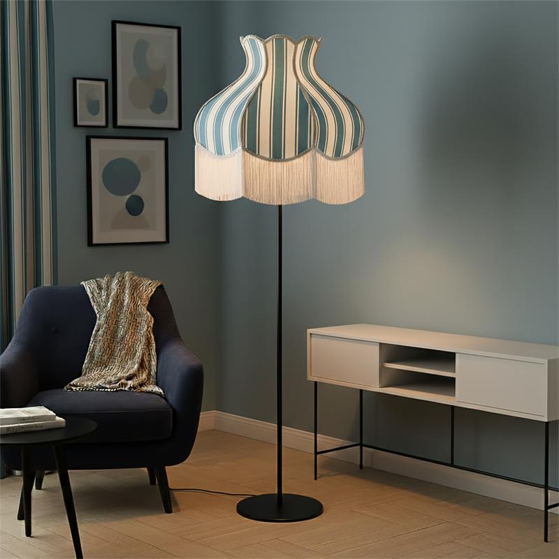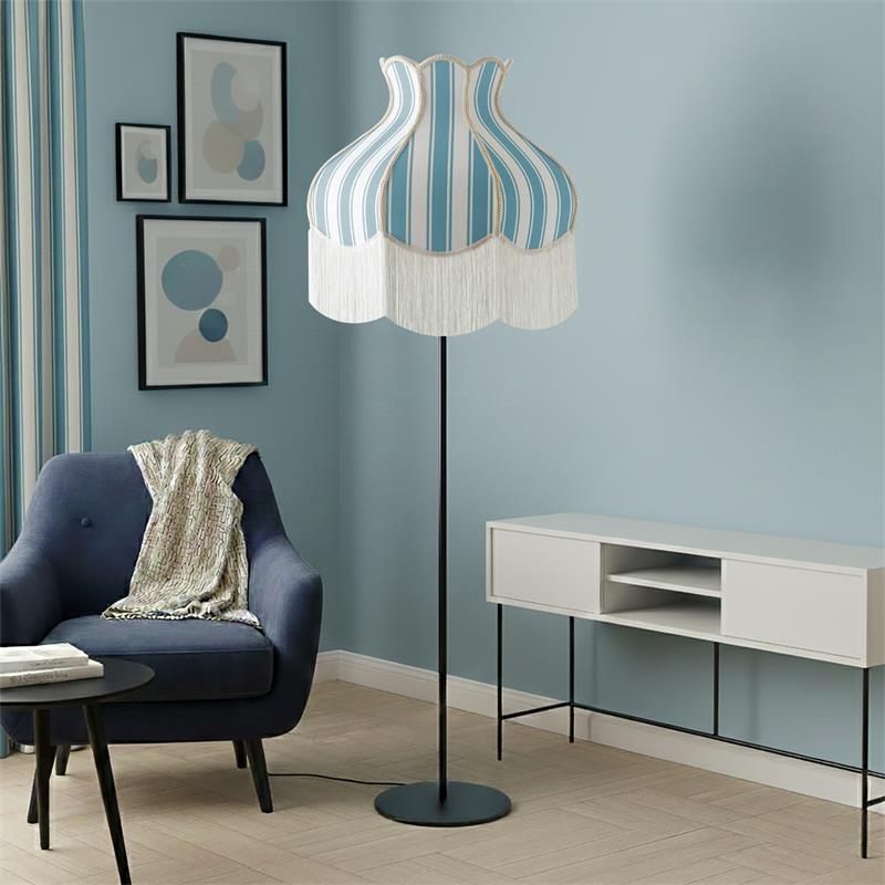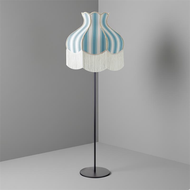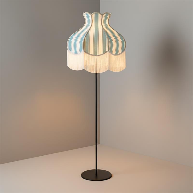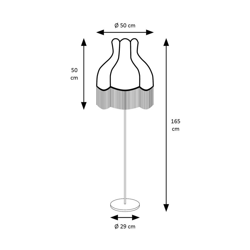 Serie EPIFANIA. Fabricado en tejido en color verde ,textil blanco ,base metal negro. Para su funcionamiento requiere 3 bombilla con casquillo E27. (bombillas no incluidas en la caja) .Apta para bombillas de tecnología Led cuya potencia máxima admitida por casquillo es de 15W. Con unas dimensiones de 50cm ancho por 50cm de profundo y 165cm de alto y un peso real aproximado de 2800 gramos.Muy fácil de limpiar con una gamuza humedecida en agua y jabón neutro, te recomendamos que evites el uso de productos químicos que puedan dañarla.