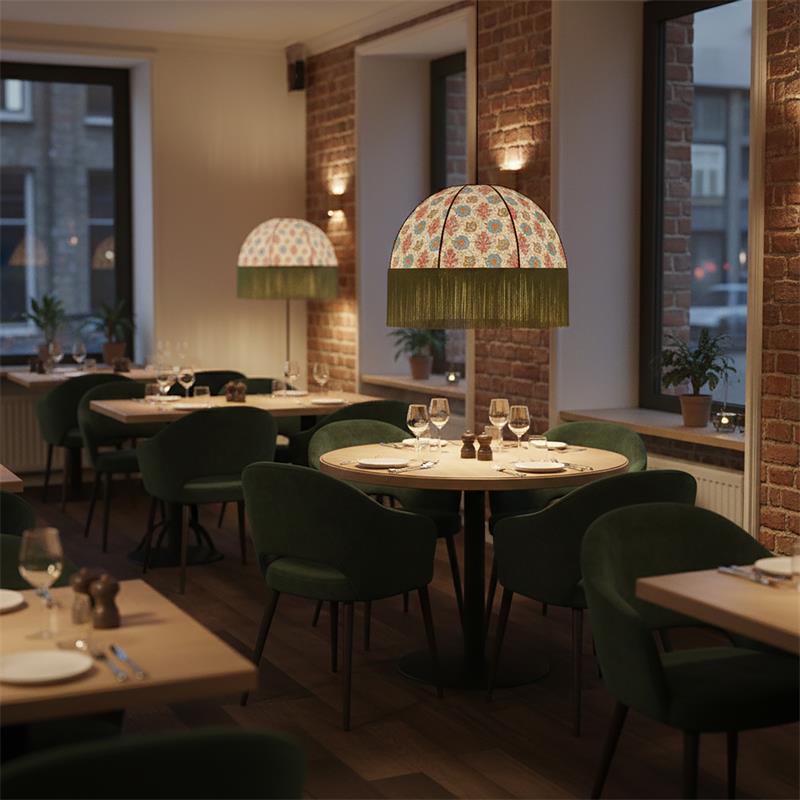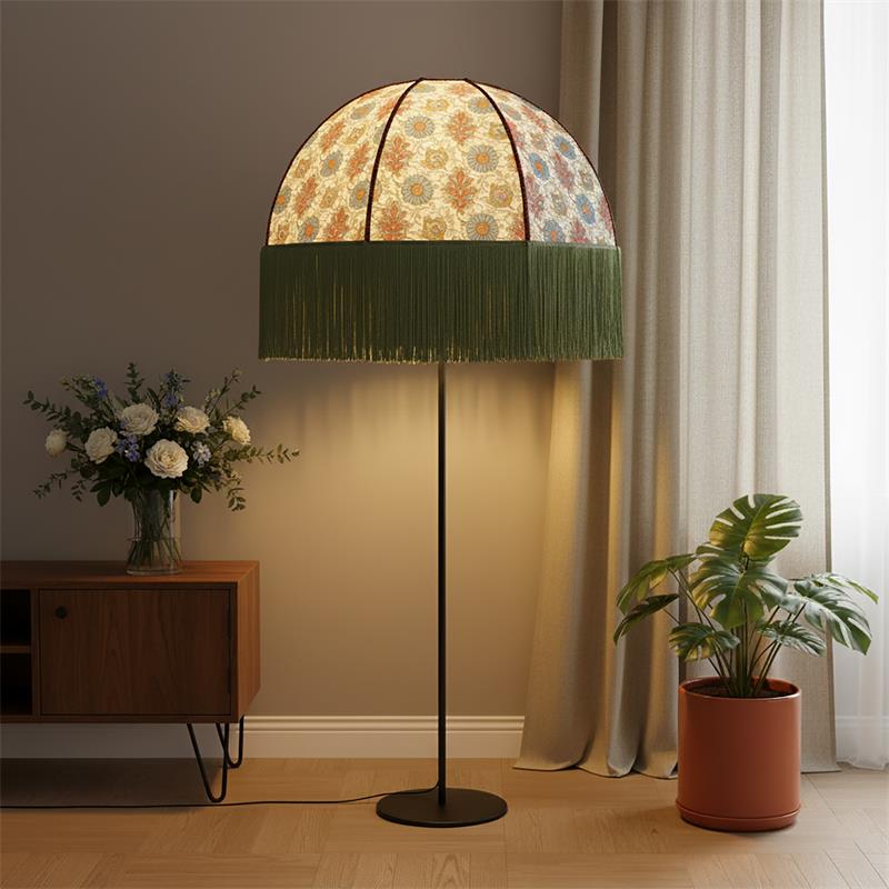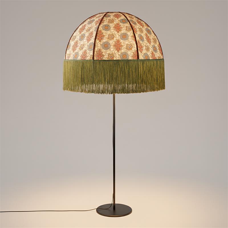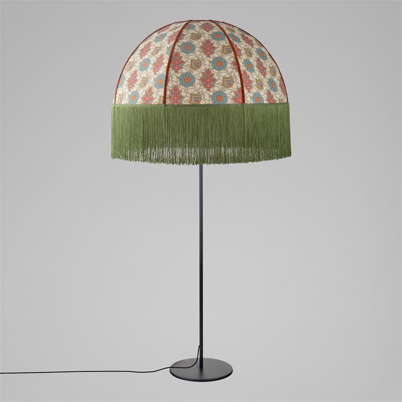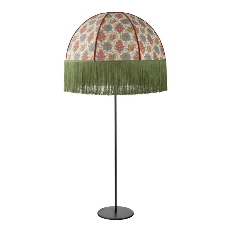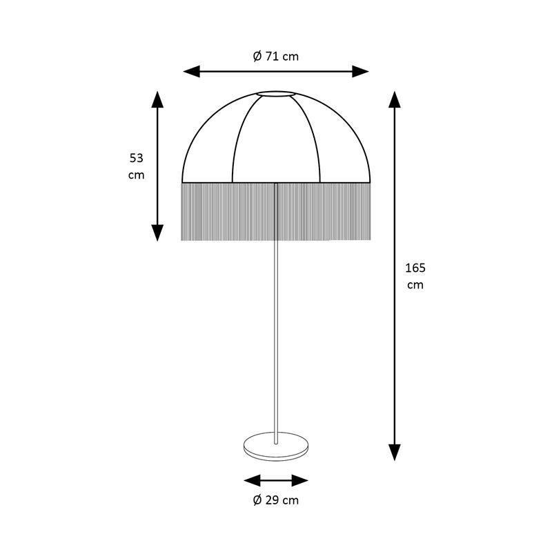 Serie MARCELA. Fabricado en tejido en color verde ,yute beige ,base metal negro. Para su funcionamiento requiere 1 bombilla con casquillo E27. (bombillas no incluidas en la caja) .Apta para bombillas de tecnología Led cuya potencia máxima admitida por casquillo es de 15W. Con unas dimensiones de 71cm ancho por 71cm de profundo y 165cm de alto y un peso real aproximado de 3350 gramos.Muy fácil de limpiar con una gamuza humedecida en agua y jabón neutro, te recomendamos que evites el uso de productos químicos que puedan dañarla.