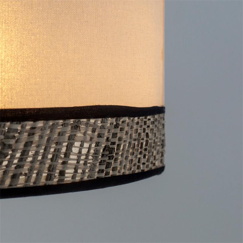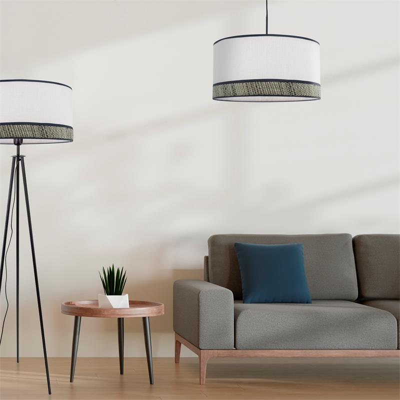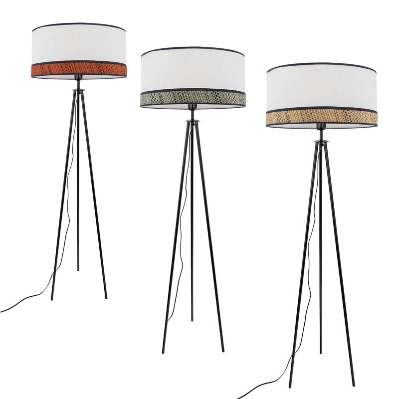 Forma parte de nuestra gama de productos de la serie MIRIAM. Fabricado en rafia en color natural ,textil blanco , negro. Para su funcionamiento requiere 1 bombilla con casquillo E27. (bombillas no incluidas en la caja) .Apta para bombillas de tecnología Led cuya potencia máxima admitida por casquillo es de 15W. Con unas dimensiones de 45cm ancho por 45cm de profundo y 150cm de alto y un peso real aproximado de 2400 gramos.Muy fácil de limpiar con una gamuza humedecida en agua y jabón neutro, te recomendamos que evites el uso de productos químicos que puedan dañarla.