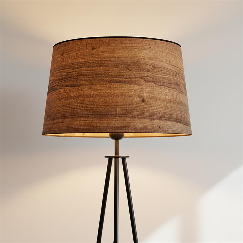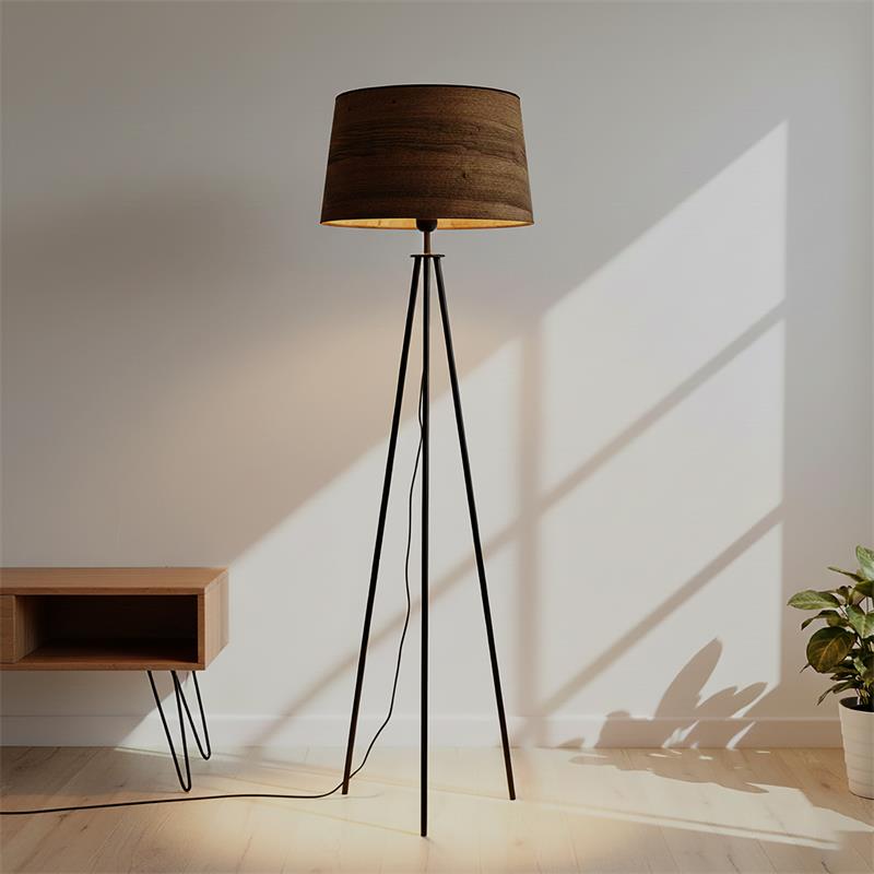 Forma parte de nuestra gama de productos de la serie AITANA. Fabricado en madera en color nogal ,metal negro ,cable pvc negro. Para su funcionamiento requiere 1 bombilla con casquillo E27. (bombillas no incluidas en la caja) .Apta para bombillas de tecnología Led cuya potencia máxima admitida por casquillo es de 15W. Con unas dimensiones de 45cm ancho por 45cm de profundo y 154cm de alto y un peso real aproximado de 2400 gramos.Muy fácil de limpiar con una gamuza humedecida en agua y jabón neutro, te recomendamos que evites el uso de productos químicos que puedan dañarla.