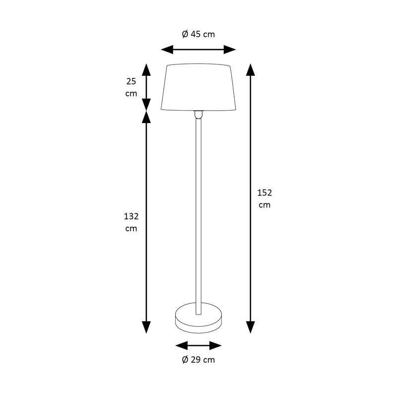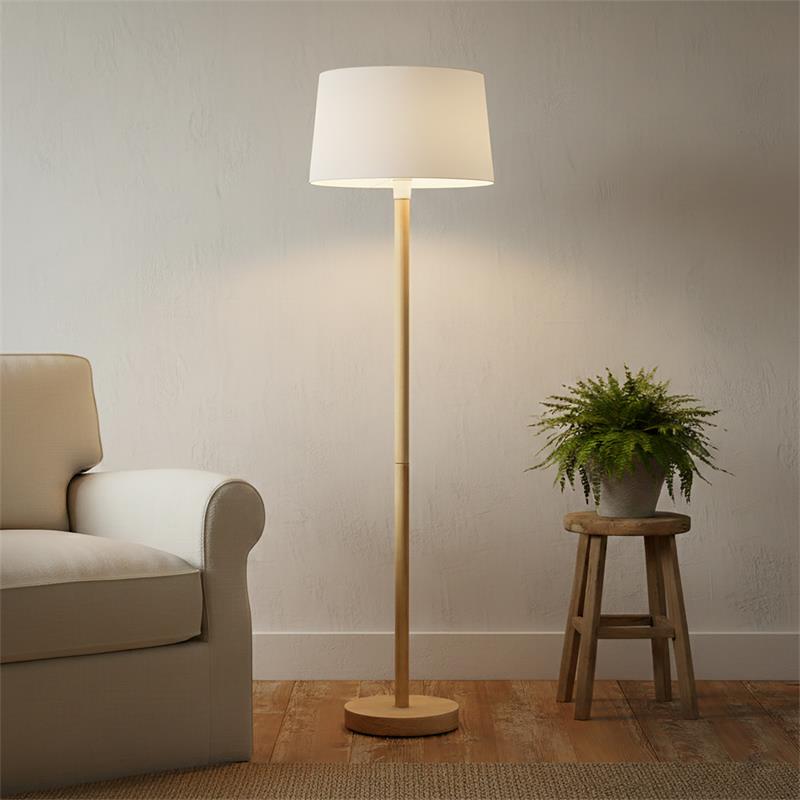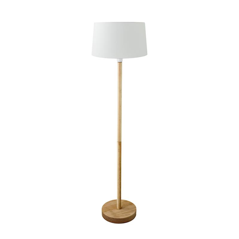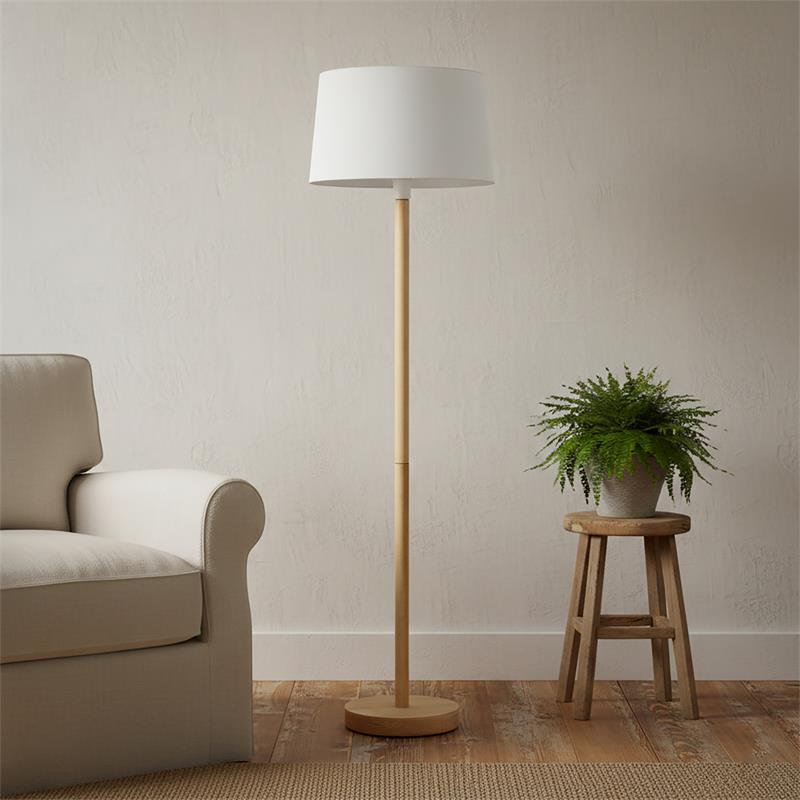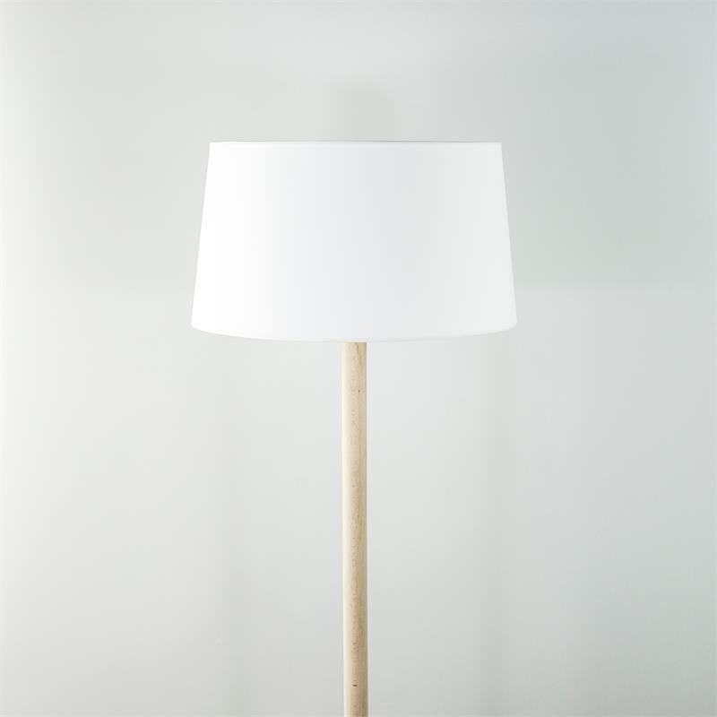 Serie CAMILA. Fabricado en madera en color haya ,textil blanco ,cable pvc blanco. Para su funcionamiento requiere 1 bombilla con casquillo E27. (bombillas no incluidas en la caja) .Apta para bombillas de tecnología Led cuya potencia máxima admitida por casquillo es de 15W. Con unas dimensiones de 45cm ancho por 45cm de profundo y 152cm de alto y un peso real aproximado de 3750 gramos.Muy fácil de limpiar con una gamuza humedecida en agua y jabón neutro, te recomendamos que evites el uso de productos químicos que puedan dañarla.