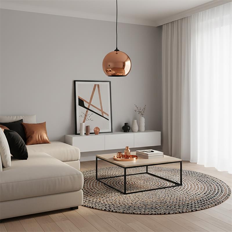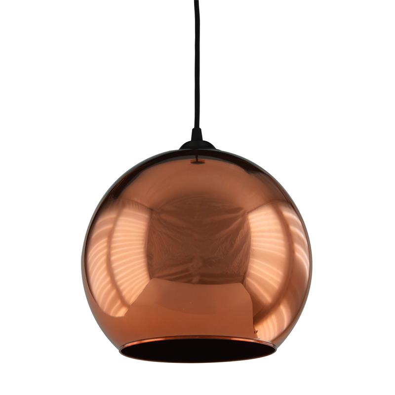 Serie monaco. Fabricado en cristal en color cobre , , . Para su funcionamiento requiere 1 bombilla con casquillo E27. (bombillas no incluidas en la caja) .Apta para bombillas de tecnología Led cuya potencia máxima admitida por casquillo es de 15W. Con unas dimensiones de 30cm ancho por 30cm de profundo y 30cm de alto (regulable en altura de 40cm mínimo y 100cm máximo) y un peso real aproximado de 1353 gramos.Muy fácil de limpiar con una gamuza humedecida en agua y jabón neutro, te recomendamos que evites el uso de productos químicos que puedan dañarla.