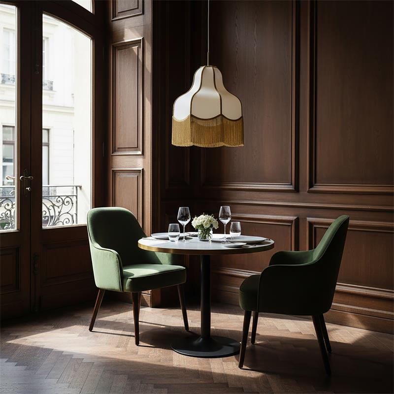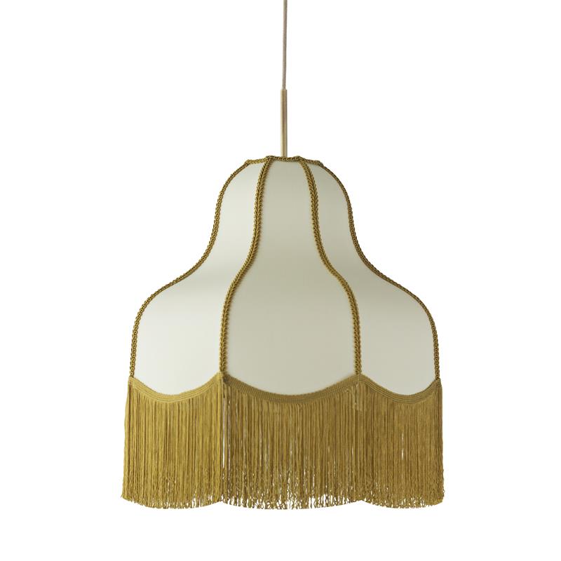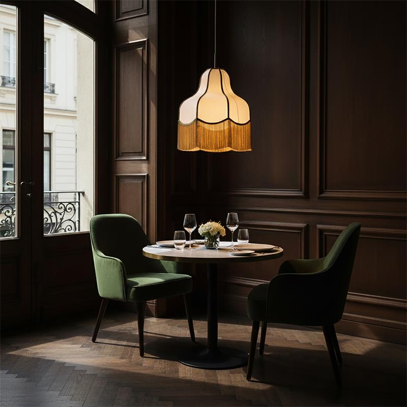 Redescubre el encanto de lo clásico con esta elegante lámpara colgante de estilo vintage, diseñada para transformar cualquier espacio en un rincón acogedor y sofisticado. Su distintiva pantalla de tela con curvas suaves y delicados flecos dorados aporta un aire nostálgico, ideal para ambientes con alma y personalidad.Perfecta para iluminar salones, comedores, dormitorios o espacios de lectura, esta lámpara no solo ofrece luz cálida y envolvente, sino que también se convierte en una pieza decorativa con carácter propio. Su diseño suspendido y acabado en dorado envejecido encaja perfectamente en estilos retro, art déco, clásico o ecléctico.Si buscas una lámpara que combine funcionalidad, belleza y un toque de historia, esta es la elección ideal.