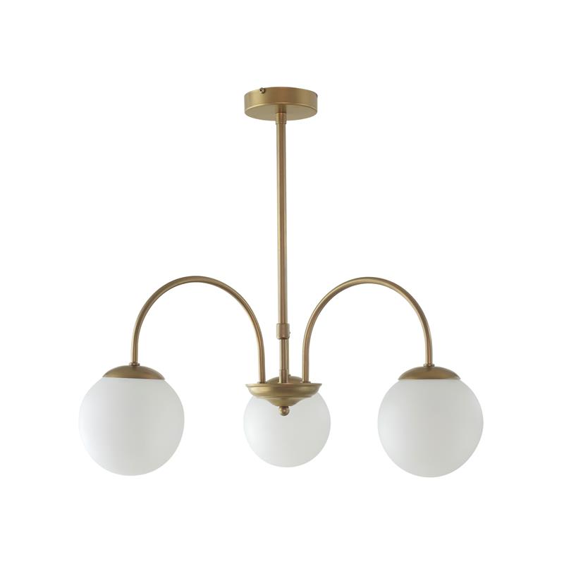 Serie ELOISE. Fabricado en metal en color dorado ,vidrio blanco , . Para su funcionamiento requiere 3 bombilla con casquillo E14. (bombillas no incluidas en la caja) .Apta para bombillas de tecnología Led cuya potencia máxima admitida por casquillo es de 15W. Con unas dimensiones de 50cm ancho por 48cm de profundo y 75cm de alto (regulable en altura de 49cm mínimo y 75cm máximo) y un peso real aproximado de 1550 gramos.Muy fácil de limpiar con una gamuza humedecida en agua y jabón neutro, te recomendamos que evites el uso de productos químicos que puedan dañarla.