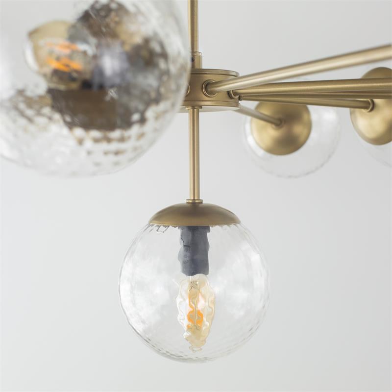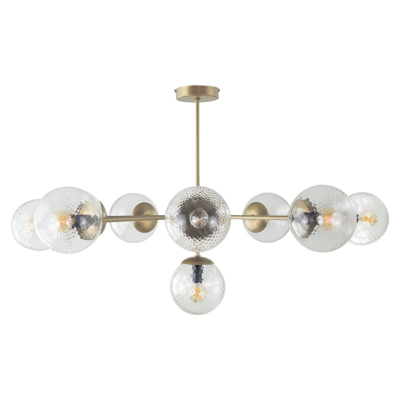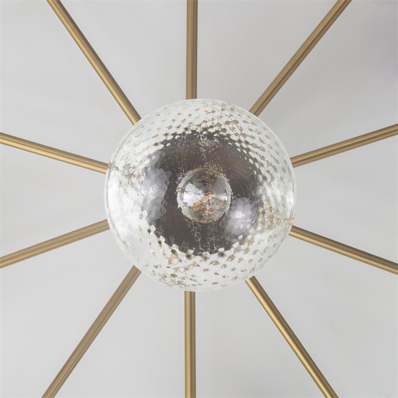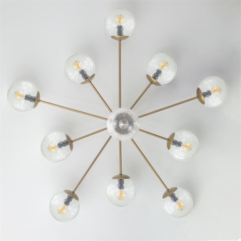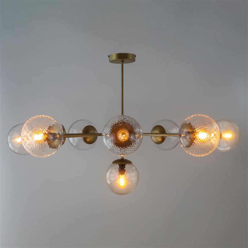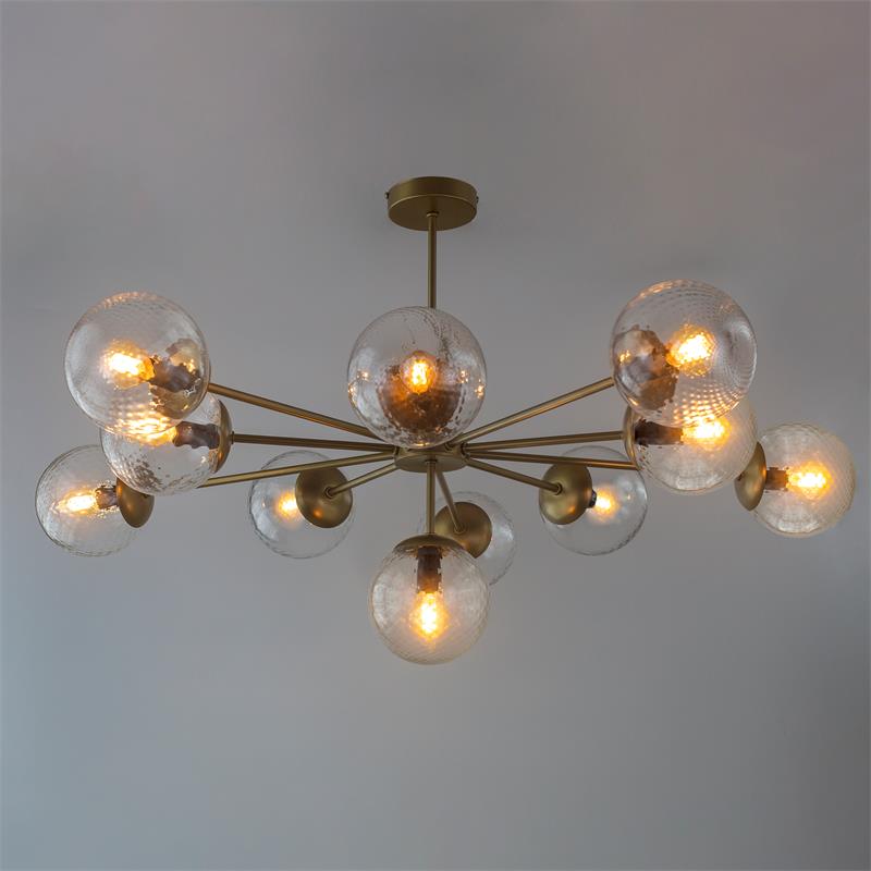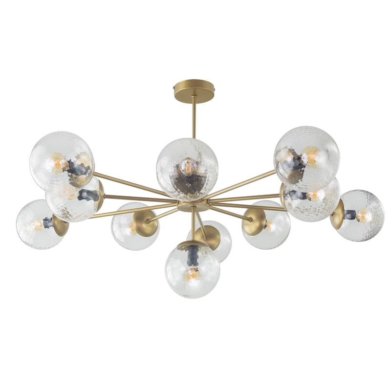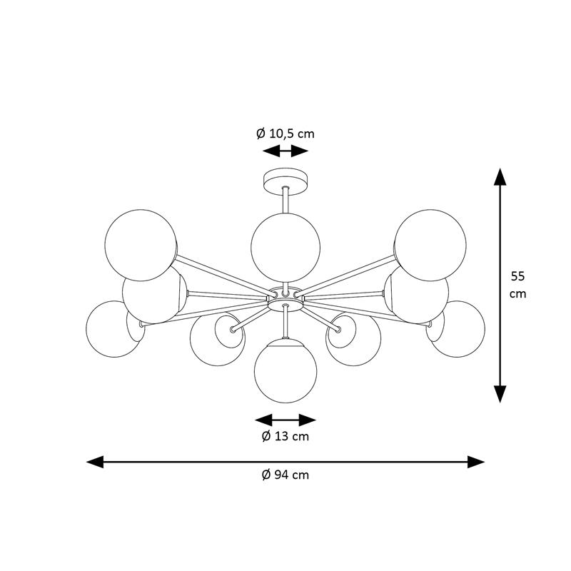Serie PATRICIA. Fabricado en metal en color dorado ,vidrio transparente , . Para su funcionamiento requiere 11 bombilla con casquillo E14. (bombillas no incluidas en la caja) .Apta para bombillas de tecnología Led cuya potencia máxima admitida por casquillo es de 15W. Con unas dimensiones de 94cm ancho por 94cm de profundo y 55cm de alto y un peso real aproximado de 4050 gramos.Muy fácil de limpiar con una gamuza humedecida en agua y jabón neutro, te recomendamos que evites el uso de productos químicos que puedan dañarla.