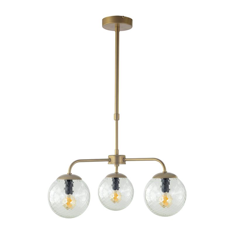 Serie PATRICIA. Fabricado en metal en color dorado ,vidrio transparente , . Para su funcionamiento requiere 3 bombilla con casquillo E14. (bombillas no incluidas en la caja) .Apta para bombillas de tecnología Led cuya potencia máxima admitida por casquillo es de 15W. Con unas dimensiones de 44cm ancho por 40cm de profundo y 84cm de alto (regulable en altura de 57cm mínimo y 84cm máximo) y un peso real aproximado de 1330 gramos.Muy fácil de limpiar con una gamuza humedecida en agua y jabón neutro, te recomendamos que evites el uso de productos químicos que puedan dañarla.