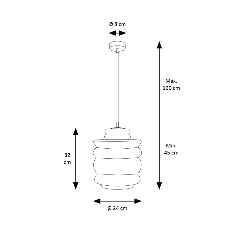 Serie OTiLIA. Fabricado en cristal en color transparente ,metal oro , . Para su funcionamiento requiere 1 bombilla con casquillo E27. (bombillas no incluidas en la caja) .Apta para bombillas de tecnología Led cuya potencia máxima admitida por casquillo es de 15W. Con unas dimensiones de 32cm ancho por 32cm de profundo y 25cm de alto (regulable en altura de 45cm mínimo y 120cm máximo) y un peso real aproximado de 1580 gramos.Muy fácil de limpiar con una gamuza humedecida en agua y jabón neutro, te recomendamos que evites el uso de productos químicos que puedan dañarla.