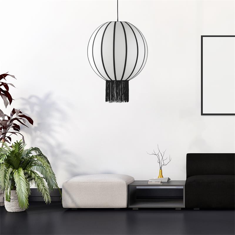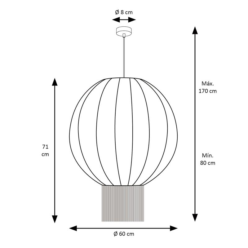 Forma parte de nuestra gama de productos de la serie GRACE. Fabricado en tejido en color blanco ,metal negro ,cable textil negro. Para su funcionamiento requiere 1 bombilla con casquillo E27. (bombillas no incluidas en la caja) .Apta para bombillas de tecnología Led cuya potencia máxima admitida por casquillo es de 15W. Con unas dimensiones de 40cm ancho por 40cm de profundo y 150cm de alto (regulable en altura de 60cm mínimo y 150cm máximo) y un peso real aproximado de 1817 gramos.Muy fácil de limpiar con una gamuza humedecida en agua y jabón neutro, te recomendamos que evites el uso de productos químicos que puedan dañarla.