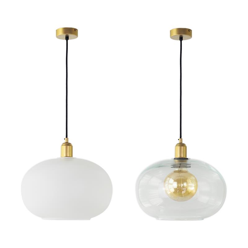 Serie ZULEMA. Fabricado en cristal en color blanco ,metal oro ,cable textil negro. Para su funcionamiento requiere 1 bombilla con casquillo E27. (bombillas no incluidas en la caja) .Apta para bombillas de tecnología Led cuya potencia máxima admitida por casquillo es de 15W. Con unas dimensiones de 30cm ancho por 30cm de profundo y 120cm de alto (regulable en altura de 40cm mínimo y 120cm máximo) y un peso real aproximado de 460 gramos.Muy fácil de limpiar con una gamuza humedecida en agua y jabón neutro, te recomendamos que evites el uso de productos químicos que puedan dañarla.