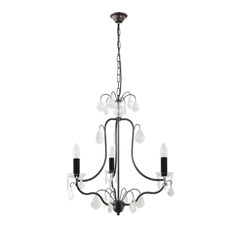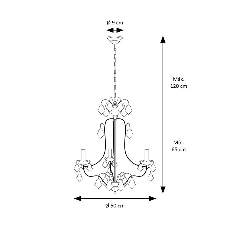 Serie CELIA. Fabricado en madera en color negro , , . Para su funcionamiento requiere 3 bombilla con casquillo E14. (bombillas no incluidas en la caja) .Apta para bombillas de tecnología Led cuya potencia máxima admitida por casquillo es de 15W. Con unas dimensiones de 50cm ancho por 50cm de profundo y 65cm de alto y un peso real aproximado de 3000 gramos.Muy fácil de limpiar con una gamuza humedecida en agua y jabón neutro, te recomendamos que evites el uso de productos químicos que puedan dañarla.
