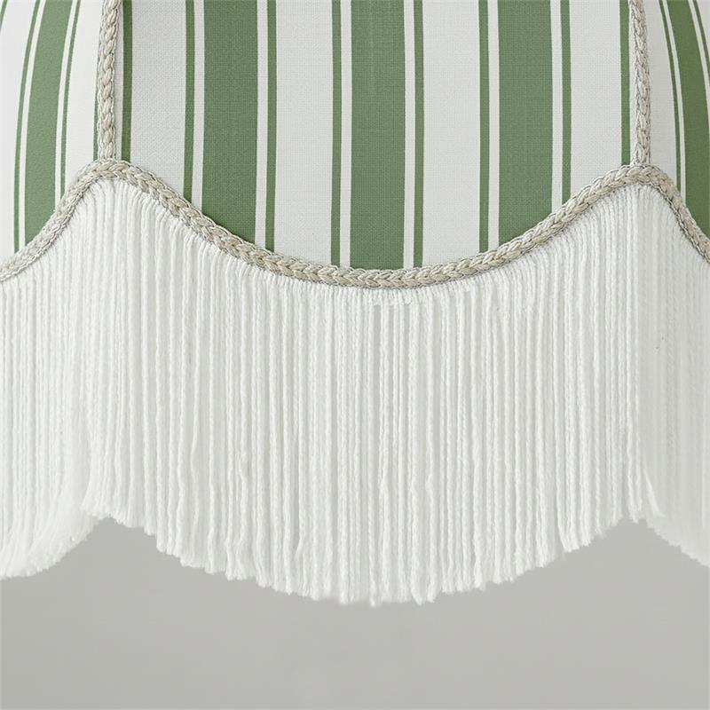 Serie LEOCADIA. Fabricado en tejido en color verde ,textil blanco ,base metal blanco. Para su funcionamiento requiere 1 bombilla con casquillo E27. (bombillas no incluidas en la caja) .Apta para bombillas de tecnología Led cuya potencia máxima admitida por casquillo es de 15W. Con unas dimensiones de 50cm ancho por 50cm de profundo y 37cm de alto (regulable en altura de 60cm mínimo y 137cm máximo) y un peso real aproximado de 1100 gramos.Muy fácil de limpiar con una gamuza humedecida en agua y jabón neutro, te recomendamos que evites el uso de productos químicos que puedan dañarla.