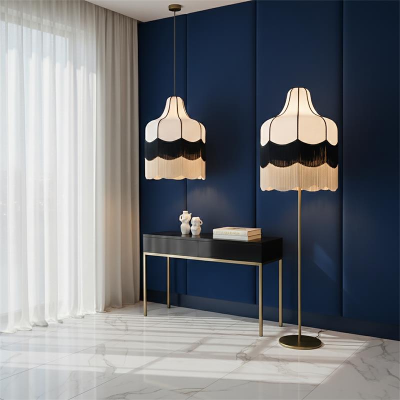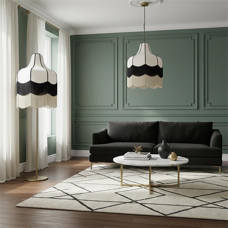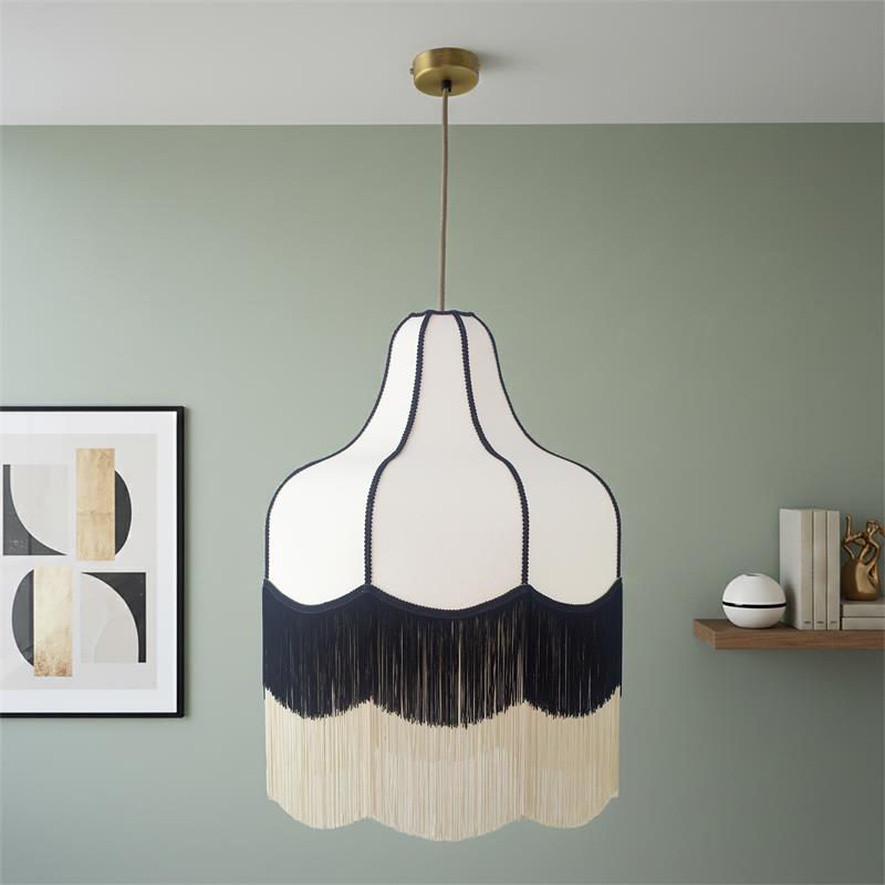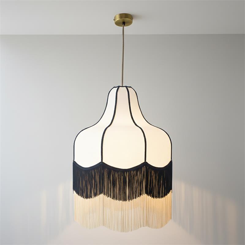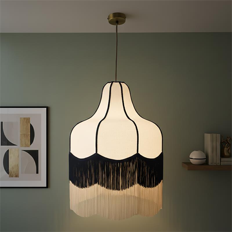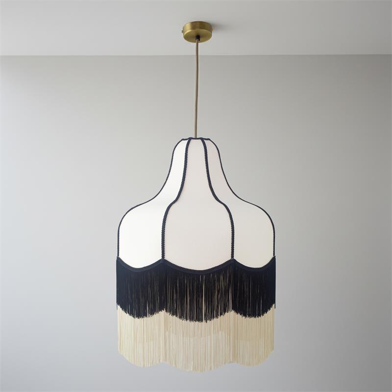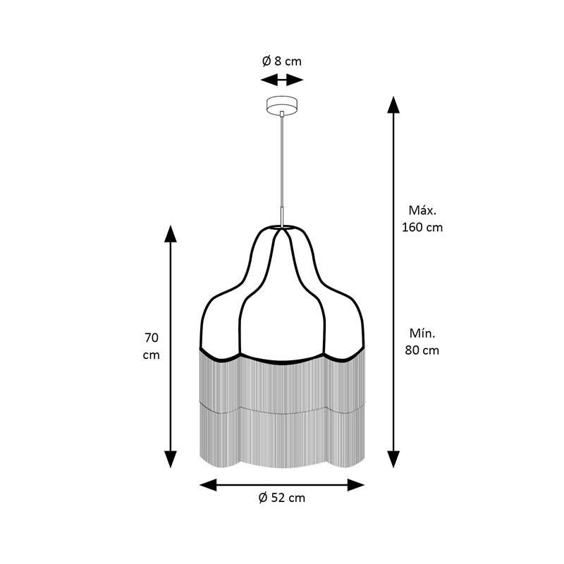Serie LIV II. Fabricado en tejido en color negro ,textil beige ,cable yute oro. Para su funcionamiento requiere 1 bombilla con casquillo E27. (bombillas no incluidas en la caja) .Apta para bombillas de tecnología Led cuya potencia máxima admitida por casquillo es de 15W. Con unas dimensiones de 52cm ancho por 52cm de profundo y 160cm de alto (regulable en altura de 80cm mínimo y 160cm máximo) y un peso real aproximado de 850 gramos.Muy fácil de limpiar con una gamuza humedecida en agua y jabón neutro, te recomendamos que evites el uso de productos químicos que puedan dañarla.