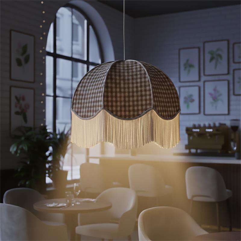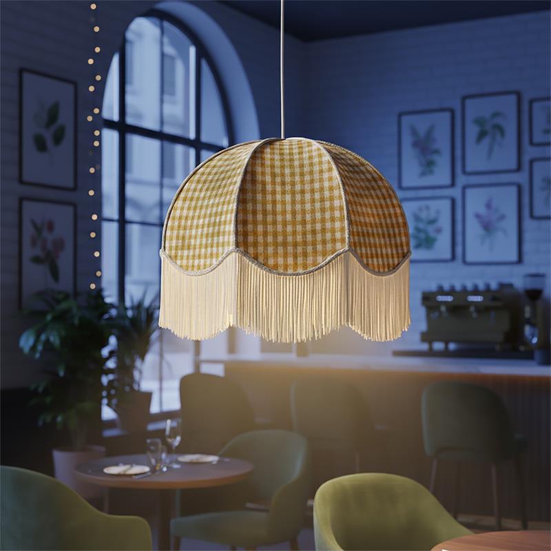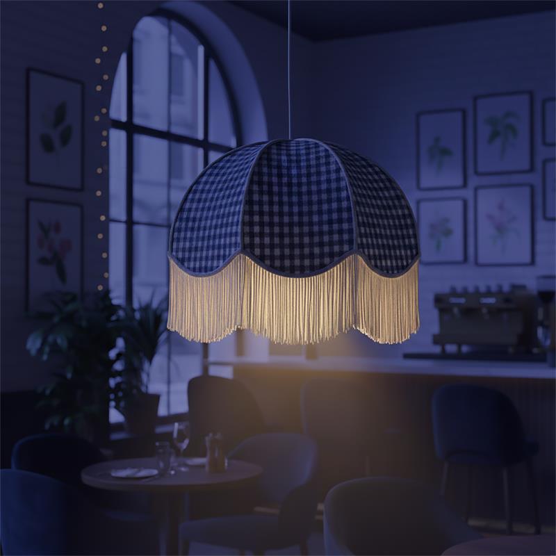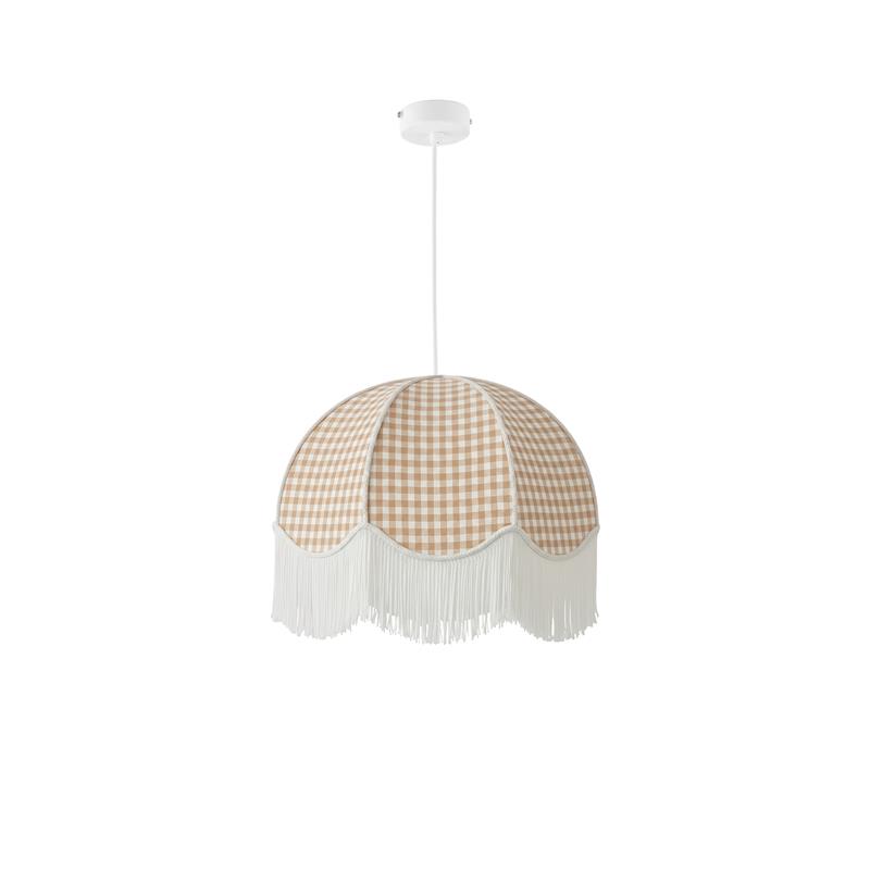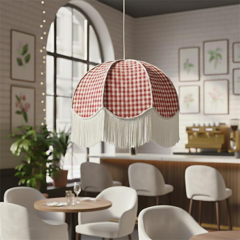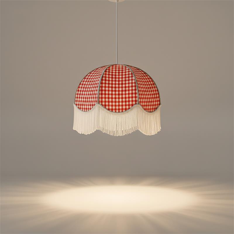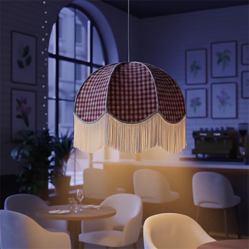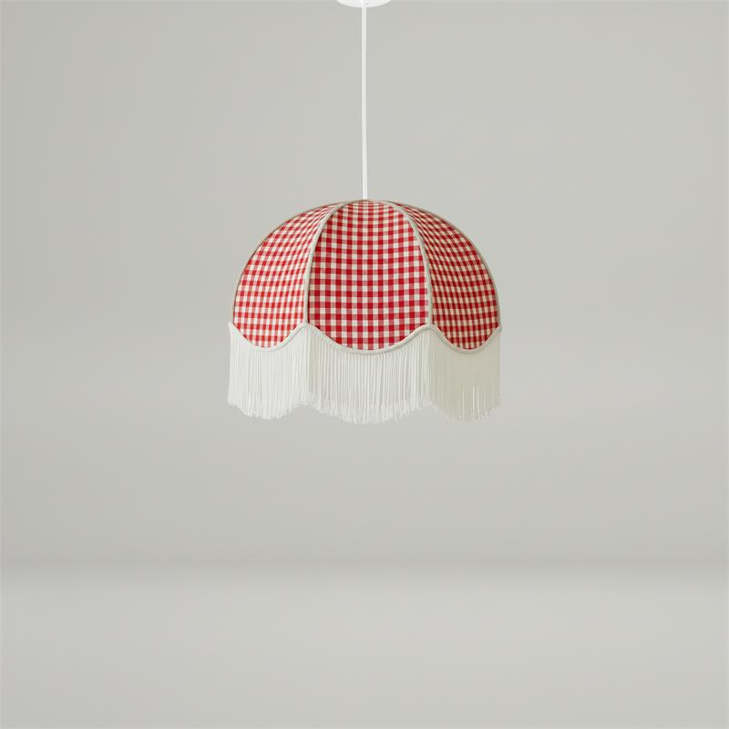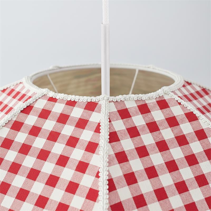 Serie NAZARIA. Fabricado en tejido en color rojo ,textil blanco ,cable textil blanco. Para su funcionamiento requiere 1 bombilla con casquillo E27. (bombillas no incluidas en la caja) .Apta para bombillas de tecnología Led cuya potencia máxima admitida por casquillo es de 15W. Con unas dimensiones de 40cm ancho por 40cm de profundo y 150cm de alto (regulable en altura de 60cm mínimo y 150cm máximo) y un peso real aproximado de 900 gramos.Muy fácil de limpiar con una gamuza humedecida en agua y jabón neutro, te recomendamos que evites el uso de productos químicos que puedan dañarla.