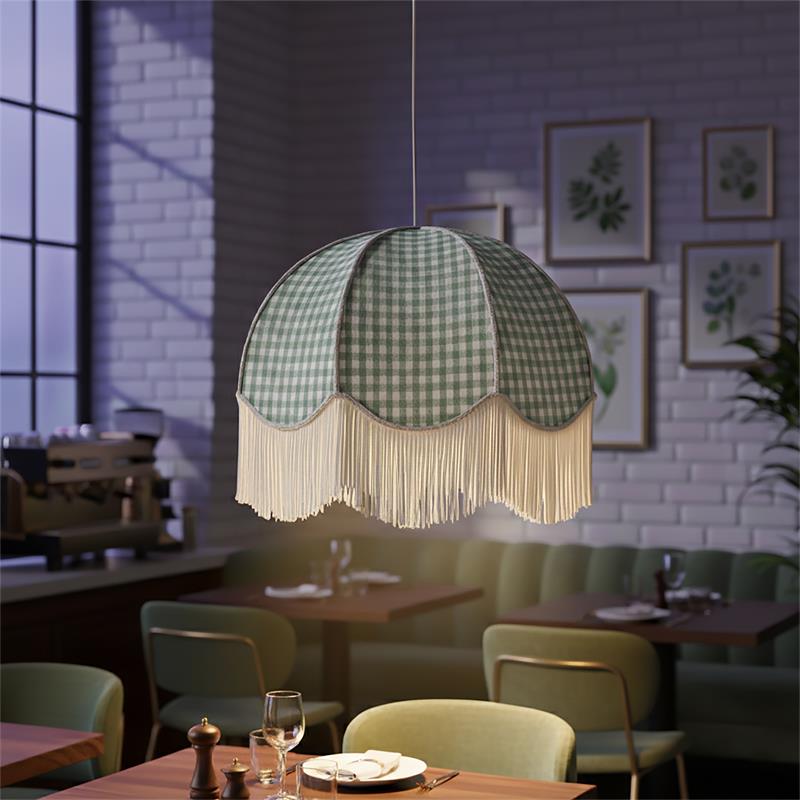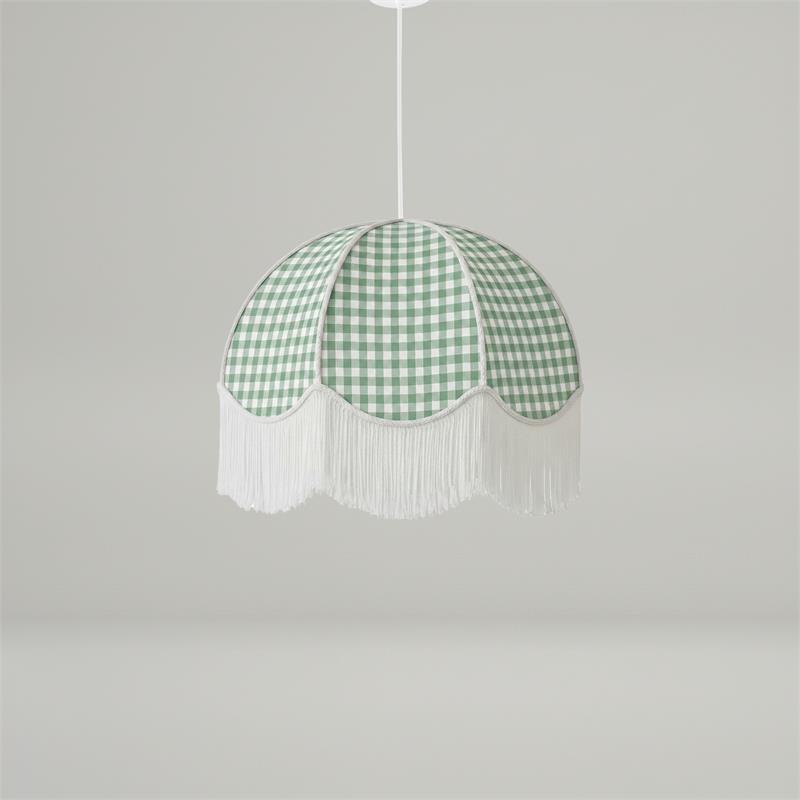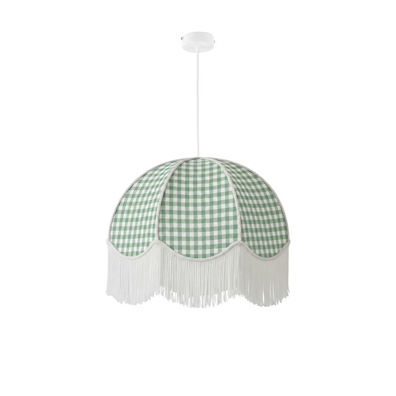 Serie NAZARIA. Fabricado en tejido en color verde ,textil blanco ,cable textil blanco. Para su funcionamiento requiere 1 bombilla con casquillo E27. (bombillas no incluidas en la caja) .Apta para bombillas de tecnología Led cuya potencia máxima admitida por casquillo es de 15W. Con unas dimensiones de 50cm ancho por 50cm de profundo y 150cm de alto (regulable en altura de 60cm mínimo y 150cm máximo) y un peso real aproximado de 1100 gramos.Muy fácil de limpiar con una gamuza humedecida en agua y jabón neutro, te recomendamos que evites el uso de productos químicos que puedan dañarla.