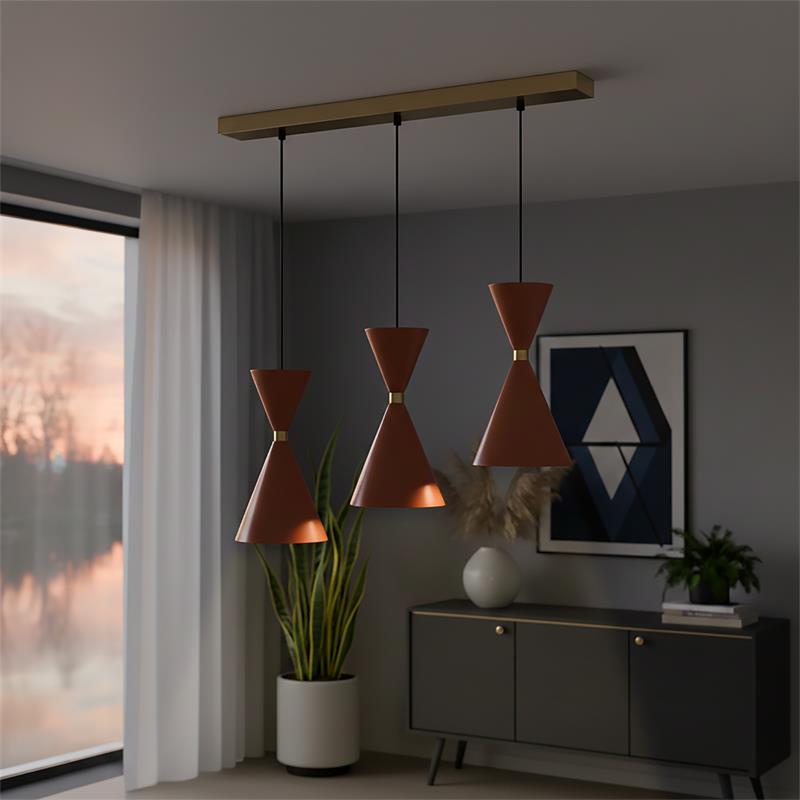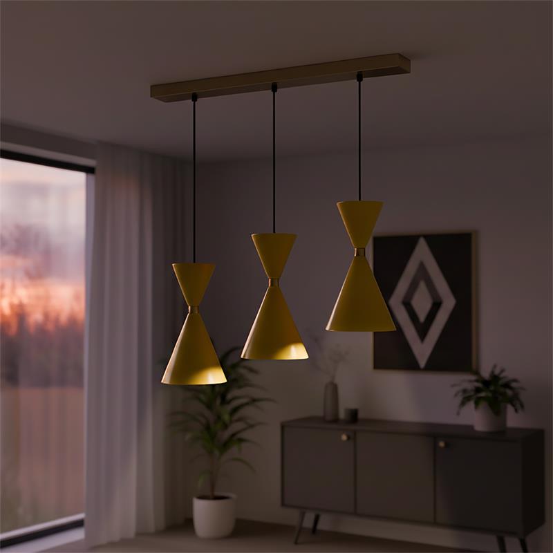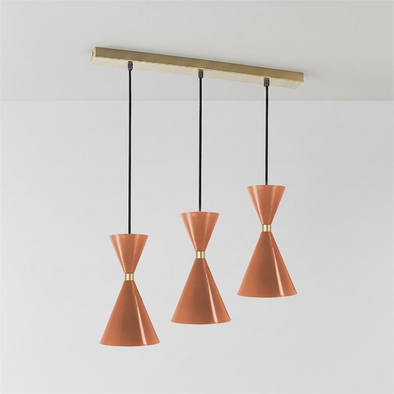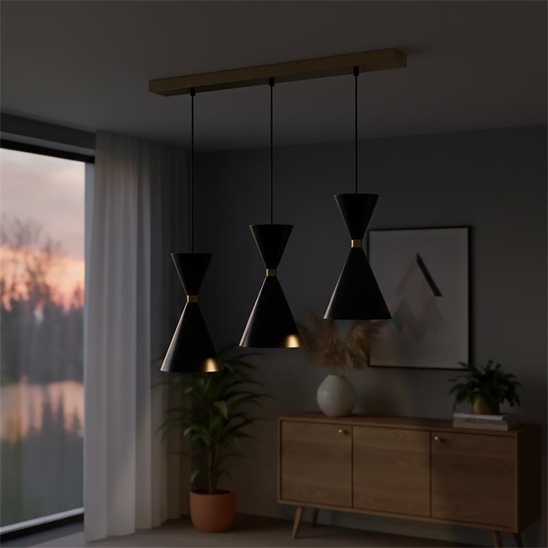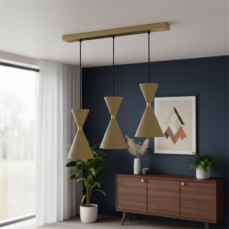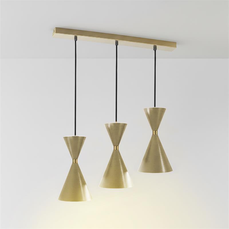Serie XENA. Fabricado en metal en color verde ,metal oro ,cable textil negro. Para su funcionamiento requiere 3 bombilla con casquillo G9. (bombillas no incluidas en la caja) .Apta para bombillas de tecnología Led cuya potencia máxima admitida por casquillo es de 9W. Con unas dimensiones de 60cm ancho por 17cm de profundo y 120cm de alto (regulable en altura de 40cm mínimo y 120cm máximo) y un peso real aproximado de 1650 gramos.Muy fácil de limpiar con una gamuza humedecida en agua y jabón neutro, te recomendamos que evites el uso de productos químicos que puedan dañarla.