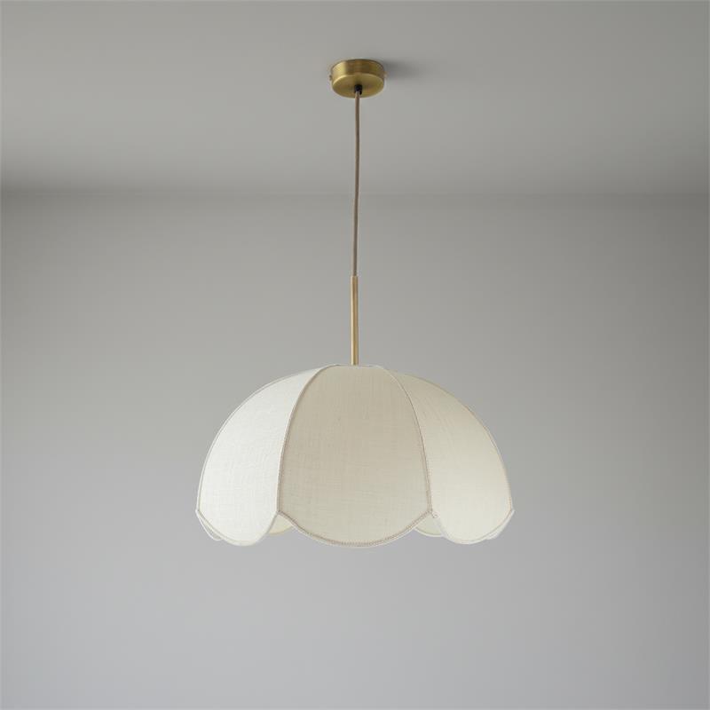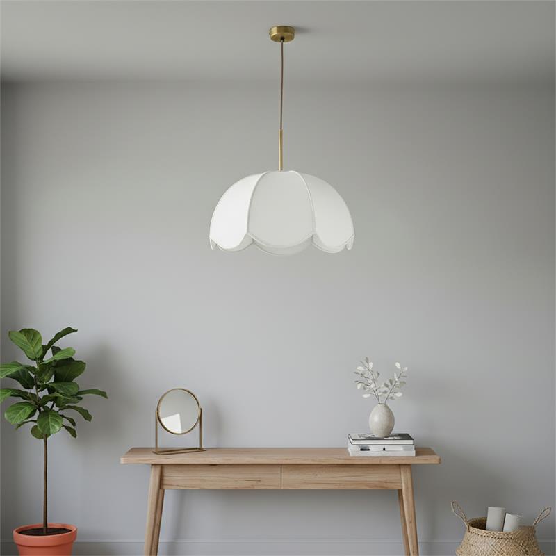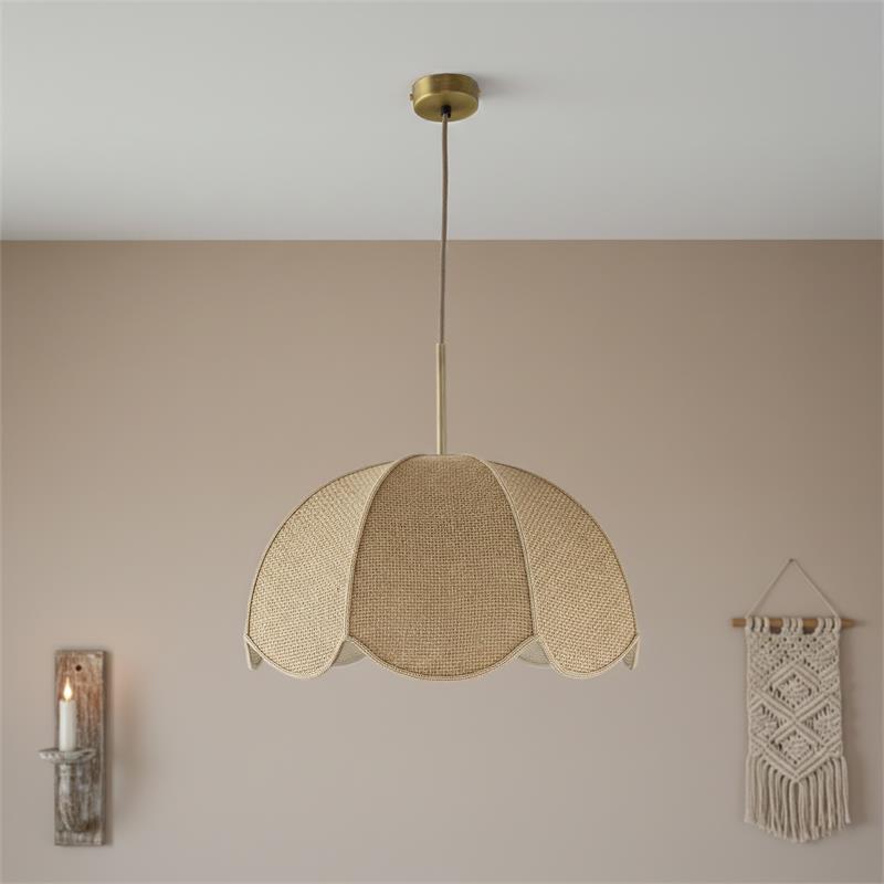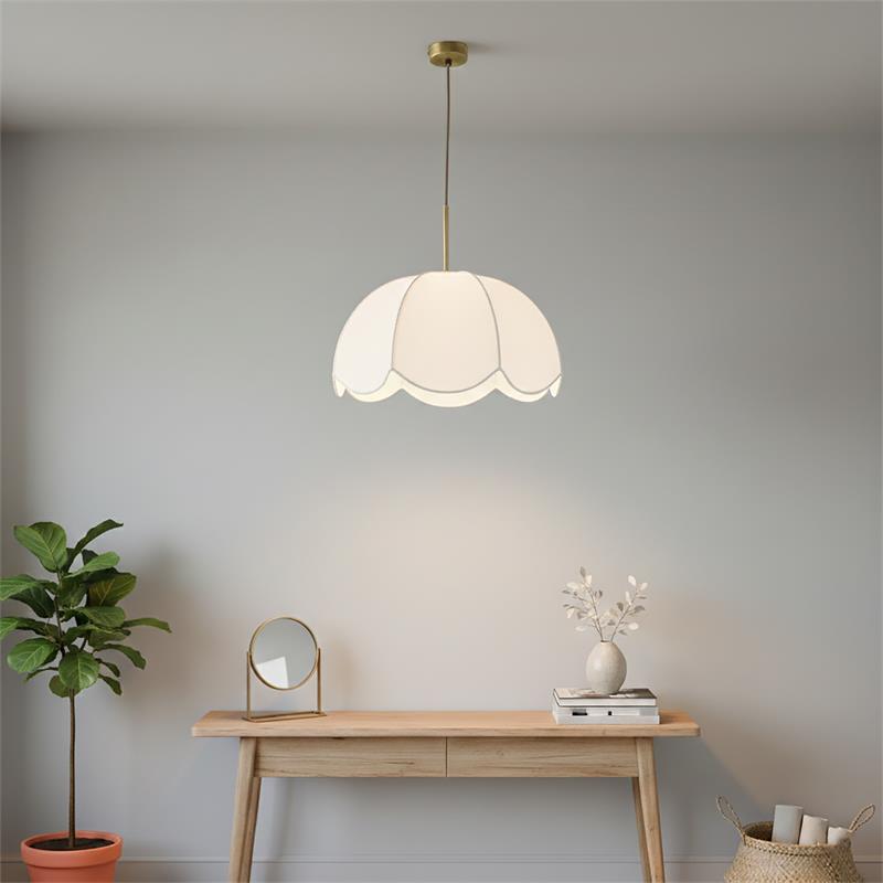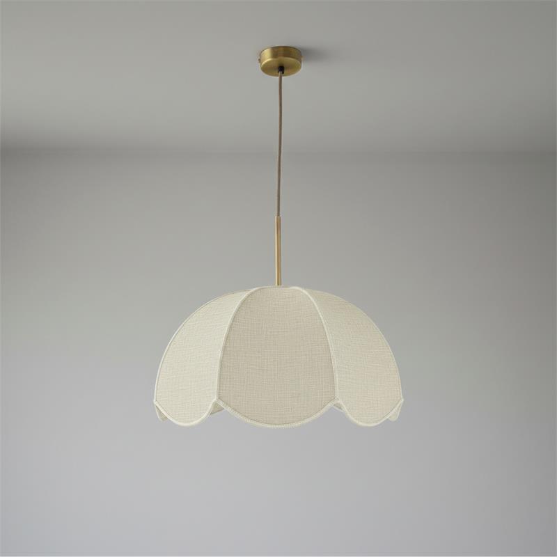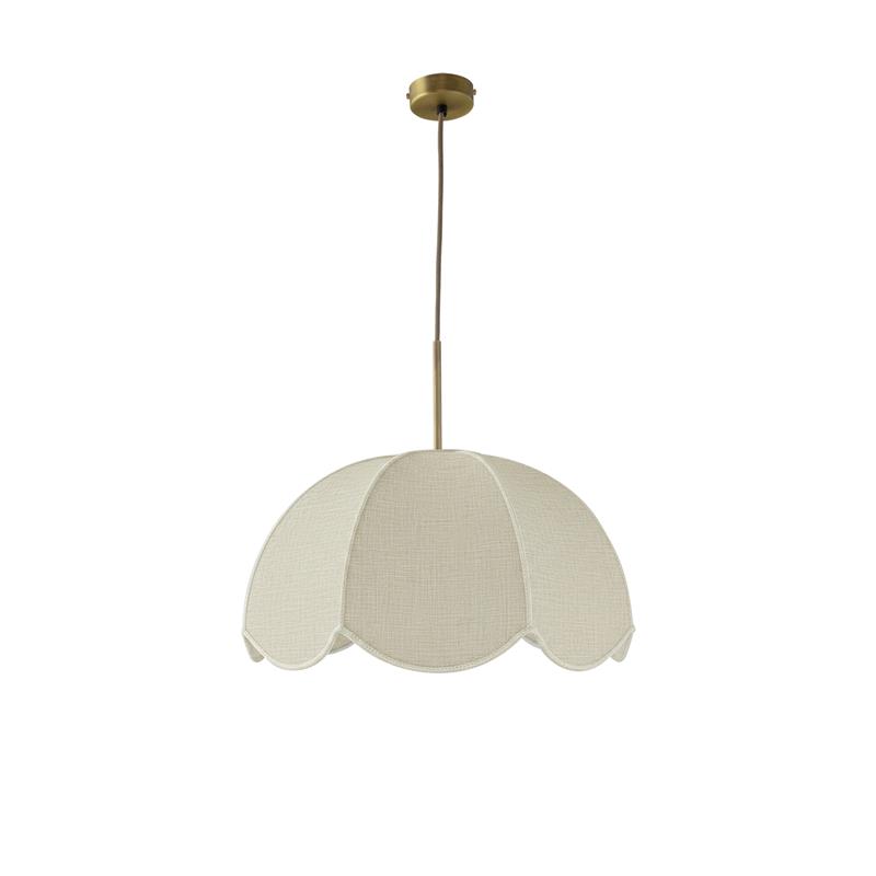 Serie VALENTINA. Fabricado en tejido en color blanco ,metal oro ,cable yute natural. Para su funcionamiento requiere 1 bombilla con casquillo E27. (bombillas no incluidas en la caja) .Apta para bombillas de tecnología Led cuya potencia máxima admitida por casquillo es de 15W. Con unas dimensiones de 40cm ancho por 40cm de profundo y 120cm de alto (regulable en altura de 30cm mínimo y 120cm máximo) y un peso real aproximado de 650 gramos.Muy fácil de limpiar con una gamuza humedecida en agua y jabón neutro, te recomendamos que evites el uso de productos químicos que puedan dañarla.