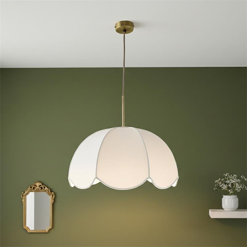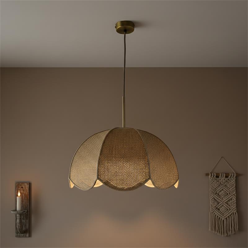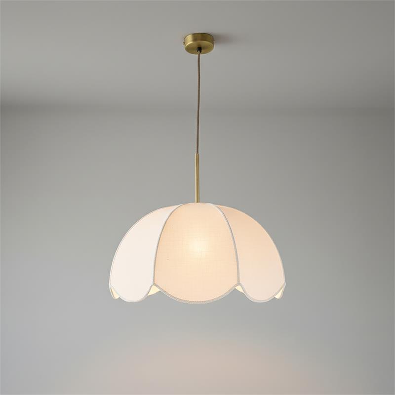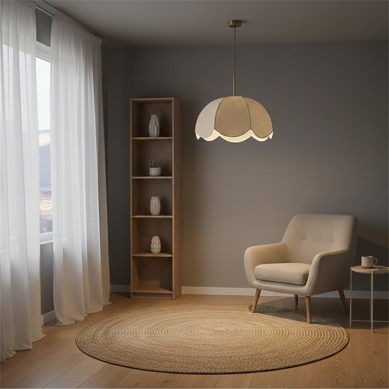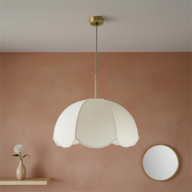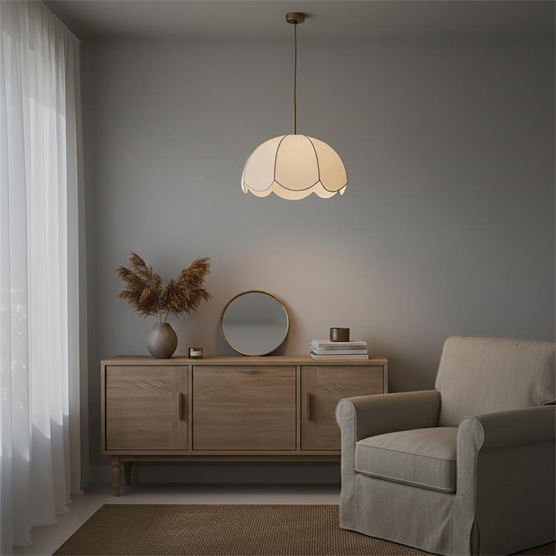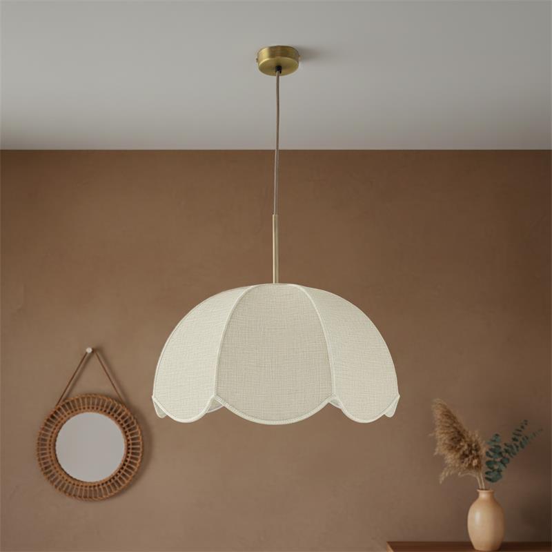 Serie VALENTINA. Fabricado en tejido en color blanco ,metal oro ,cable yute natural. Para su funcionamiento requiere 1 bombilla con casquillo E27. (bombillas no incluidas en la caja) .Apta para bombillas de tecnología Led cuya potencia máxima admitida por casquillo es de 15W. Con unas dimensiones de 40cm ancho por 40cm de profundo y 120cm de alto (regulable en altura de 30cm mínimo y 120cm máximo) y un peso real aproximado de 650 gramos.Muy fácil de limpiar con una gamuza humedecida en agua y jabón neutro, te recomendamos que evites el uso de productos químicos que puedan dañarla.